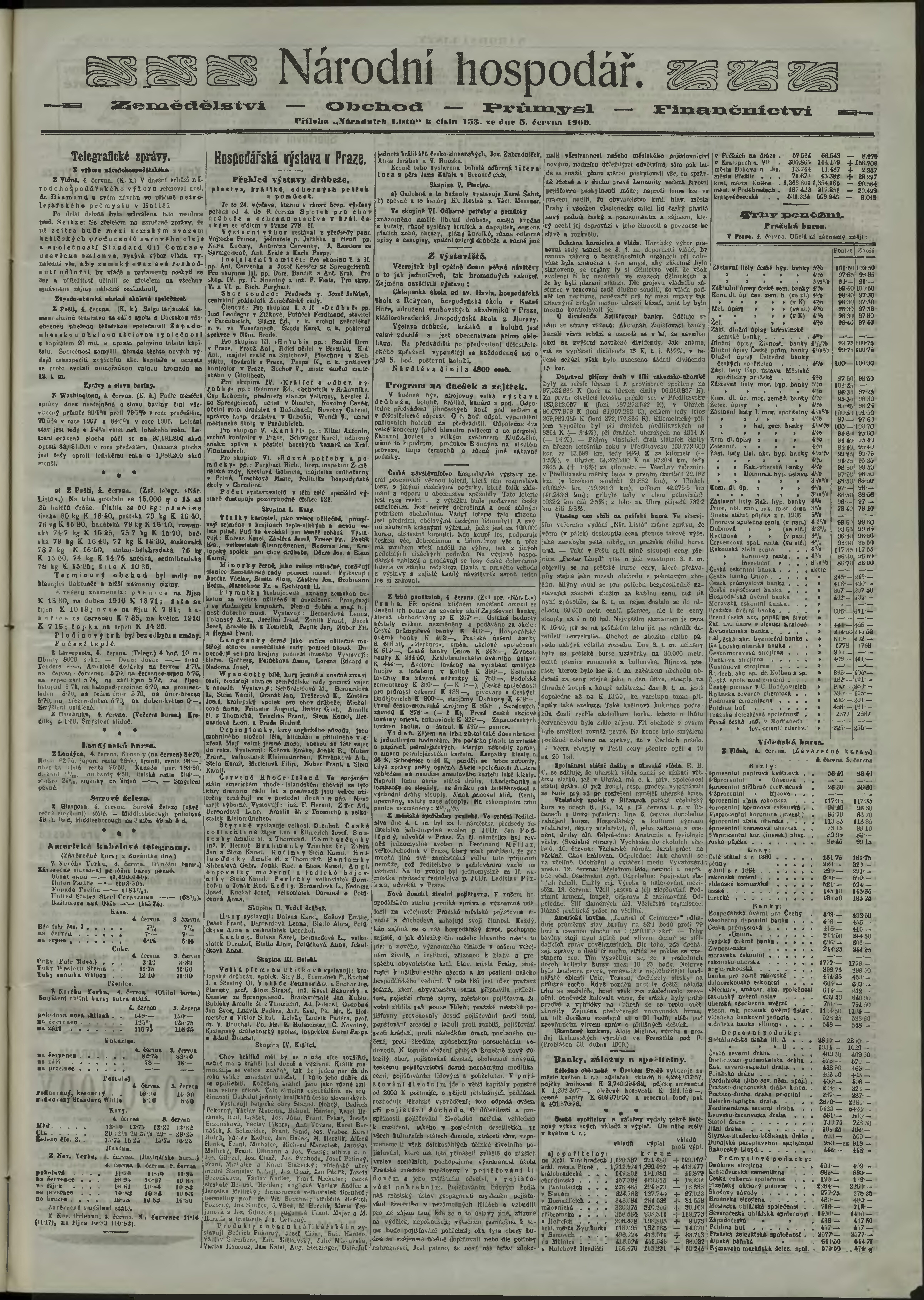 * Datum vydání výtisku: 5.6.1909 Číslo výtisku: 153 Poznámky k výtisku: ranní vydání;