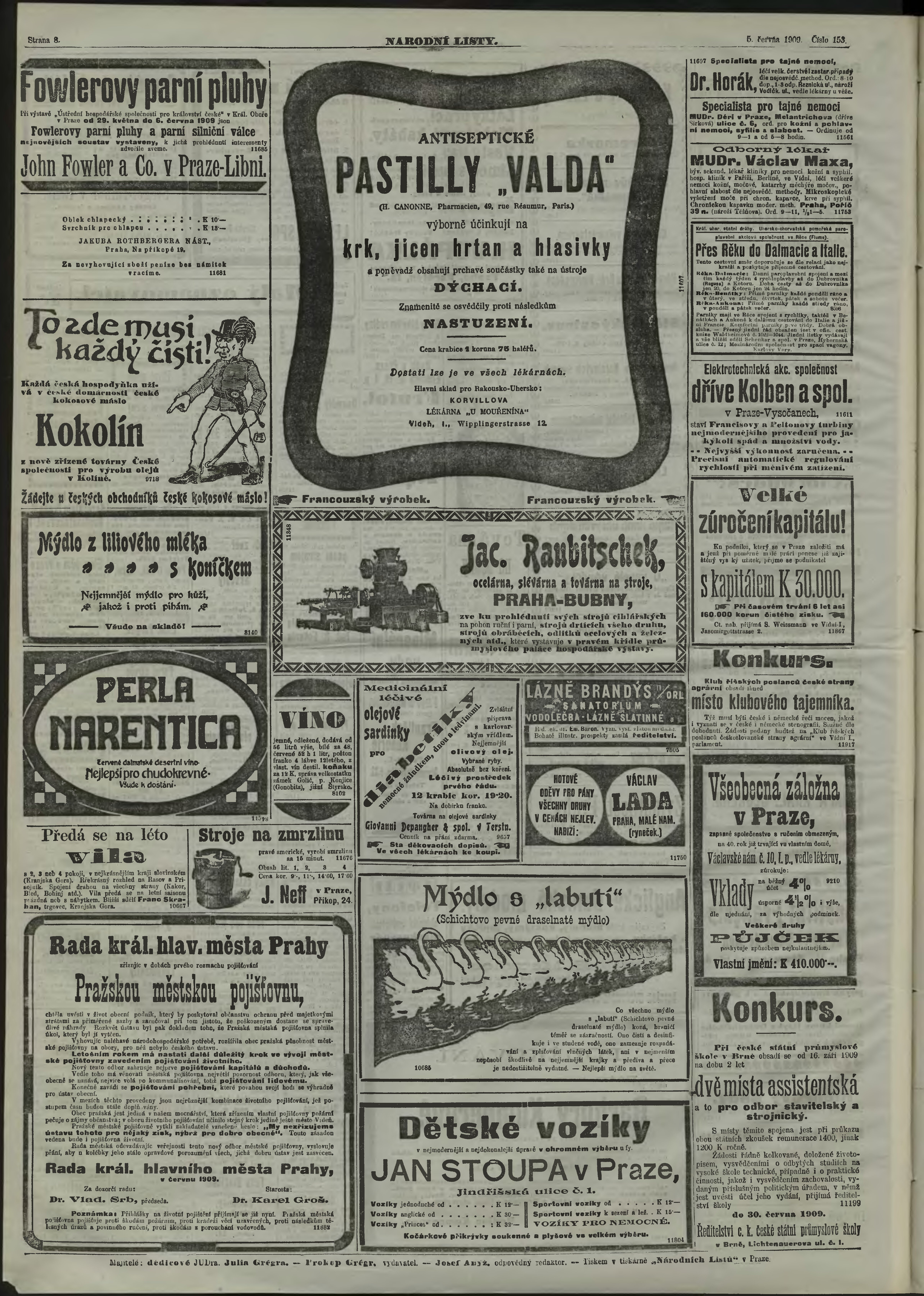 * Datum vydání výtisku: 5.6.1909 Číslo výtisku: 153 Poznámky k výtisku: ranní vydání;