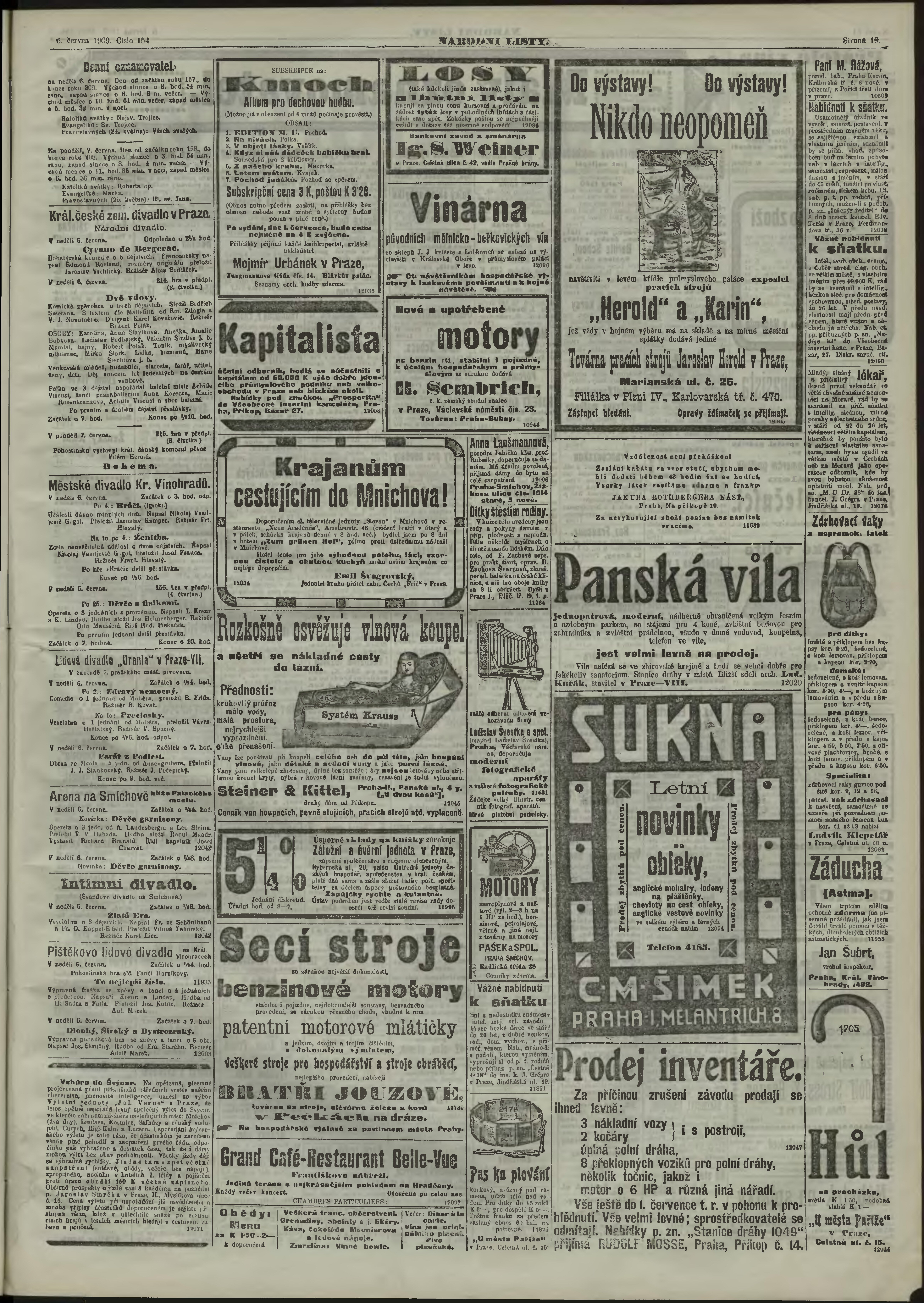 * Datum vydání výtisku: 6.6.1909 Číslo výtisku: 154 Poznámky k výtisku: ranní vydání;