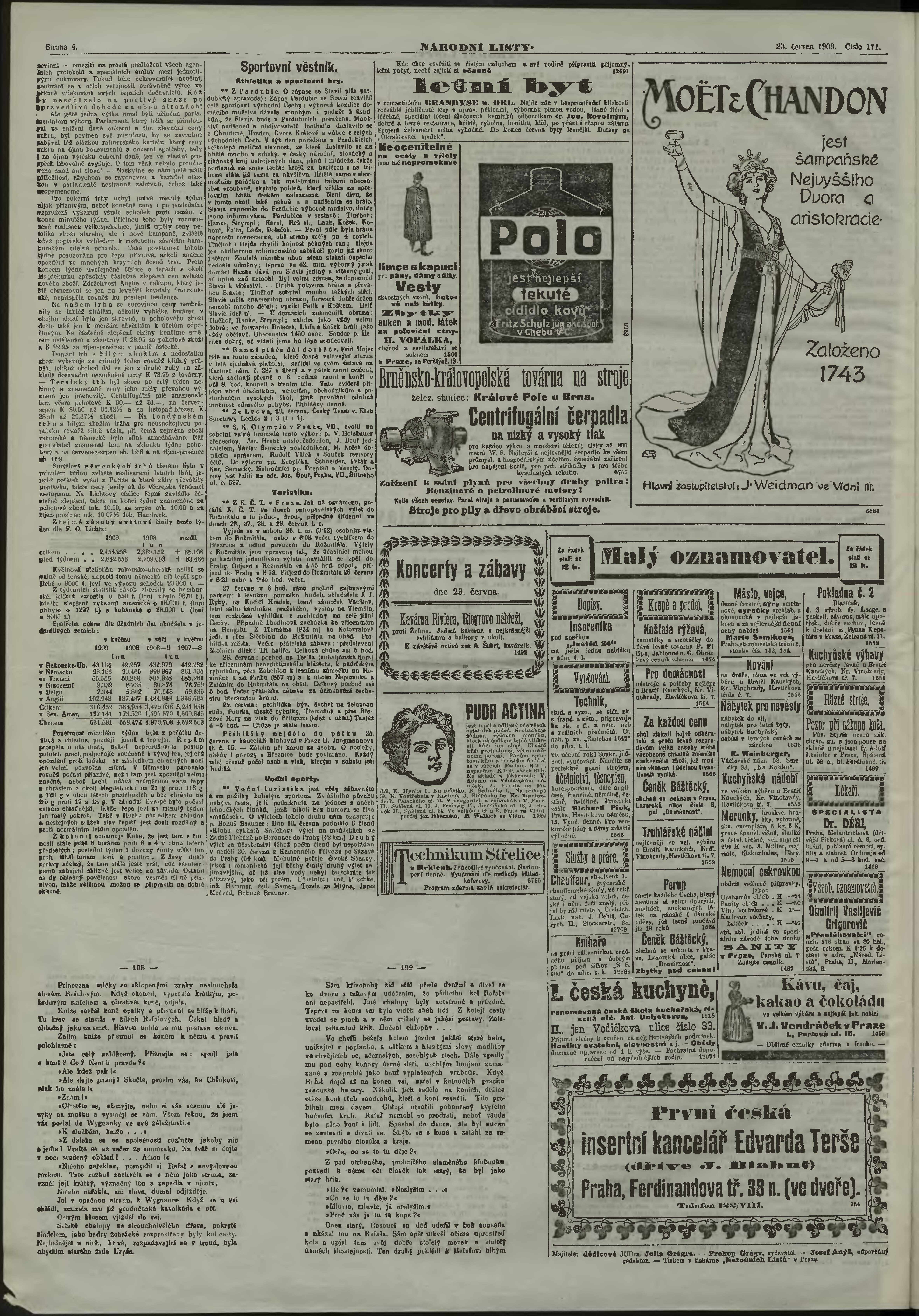 * Datum vydání výtisku: 23.6.1909 Číslo výtisku: 171 Poznámky k výtisku: večerní vydání;