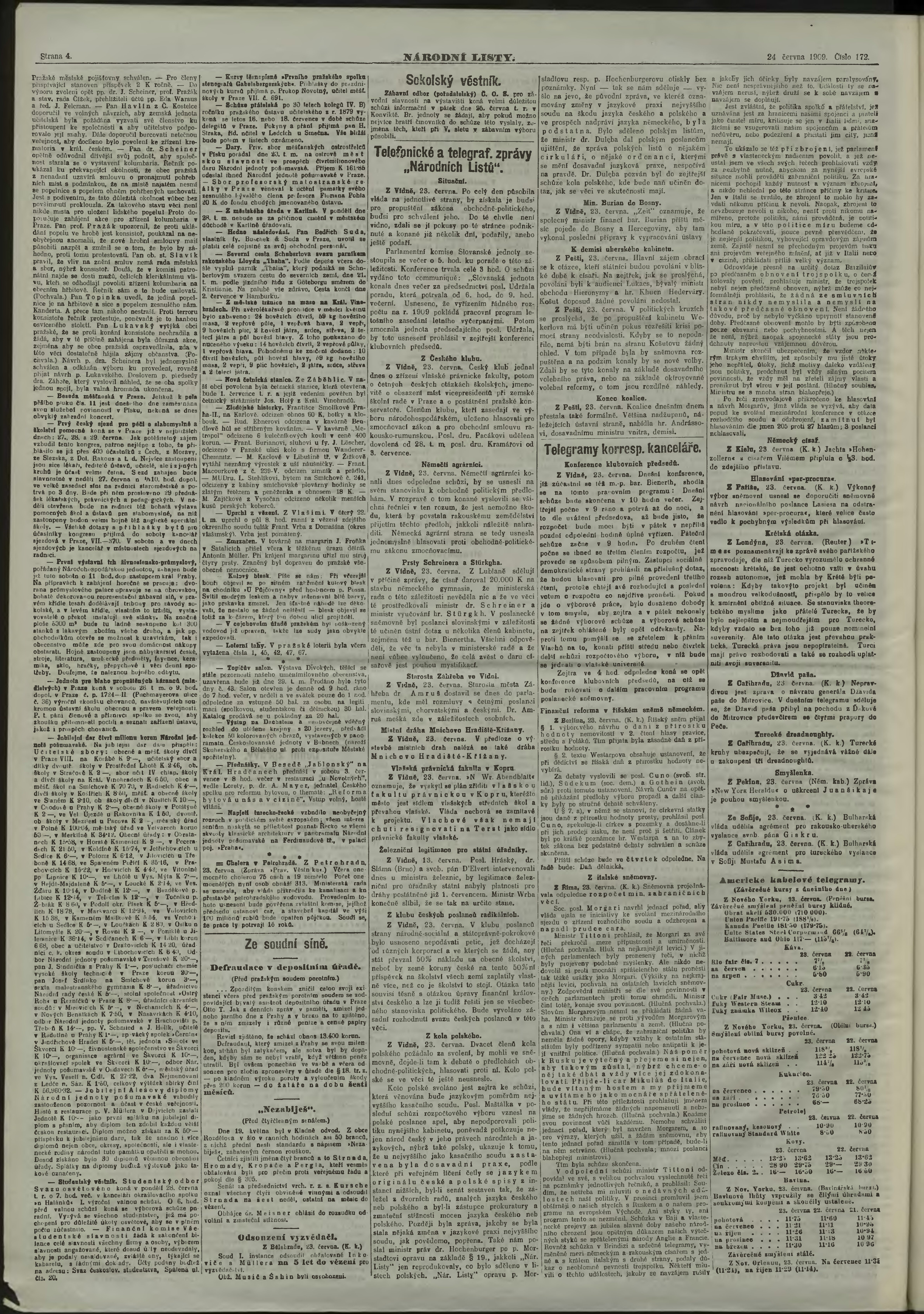 * Datum vydání výtisku: 24.6.1909 Číslo výtisku: 172 Poznámky k výtisku: ranní vydání;