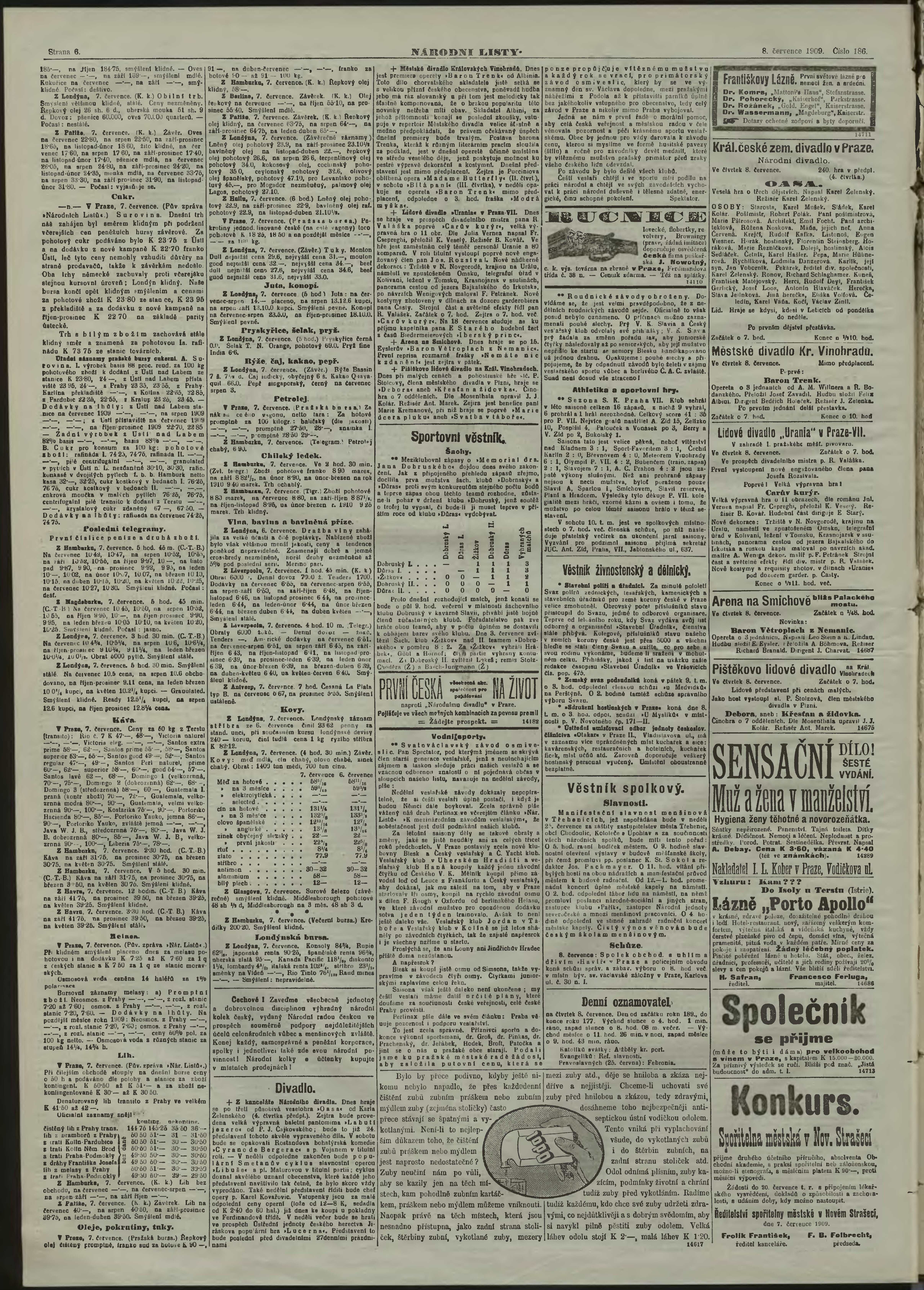 * Datum vydání výtisku: 8.7.1909 Číslo výtisku: 186 Poznámky k výtisku: ranní vydání;