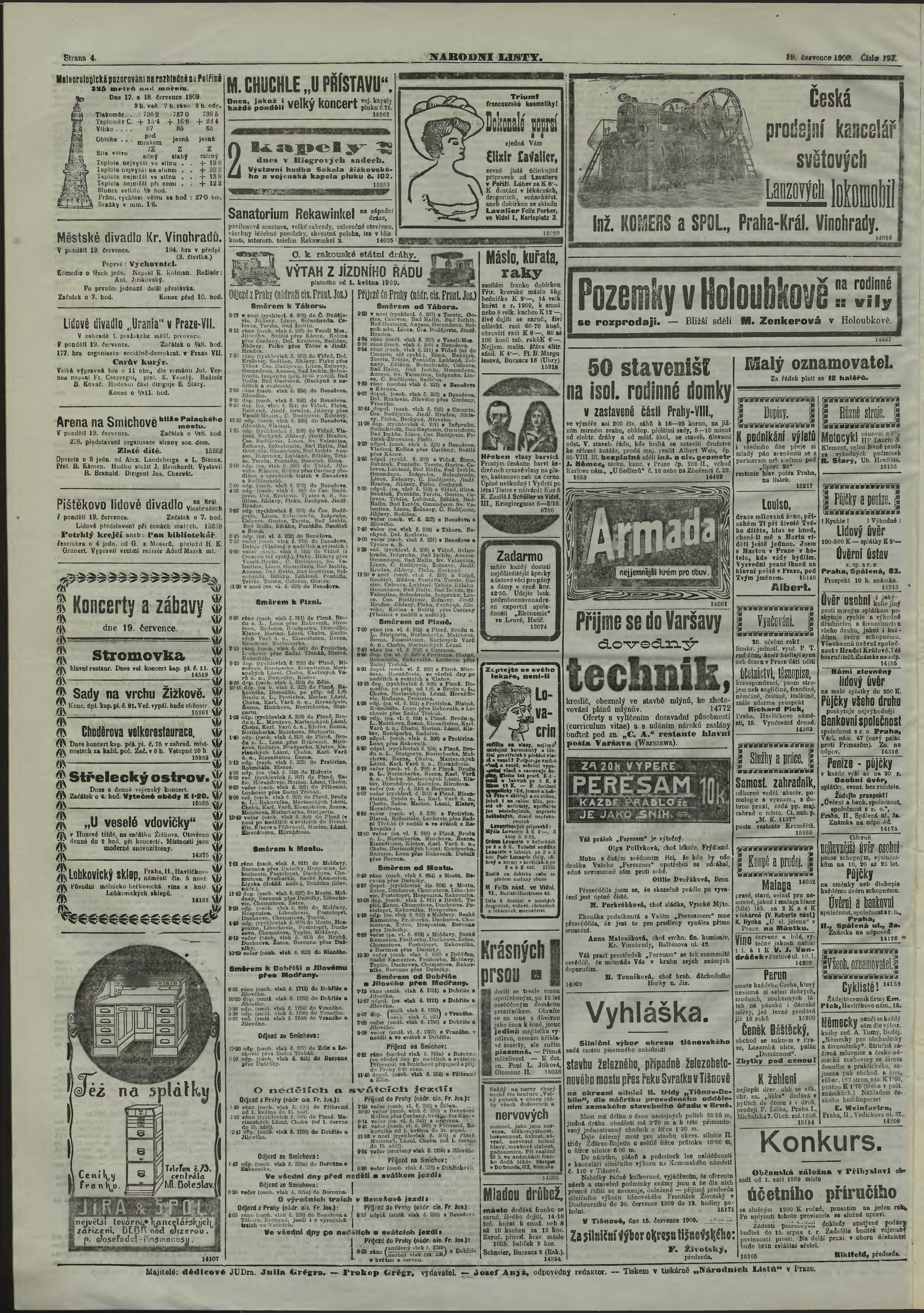 * Datum vydání výtisku: 19.7.1909 Číslo výtisku: 197 Poznámky k výtisku: ranní vydání;
