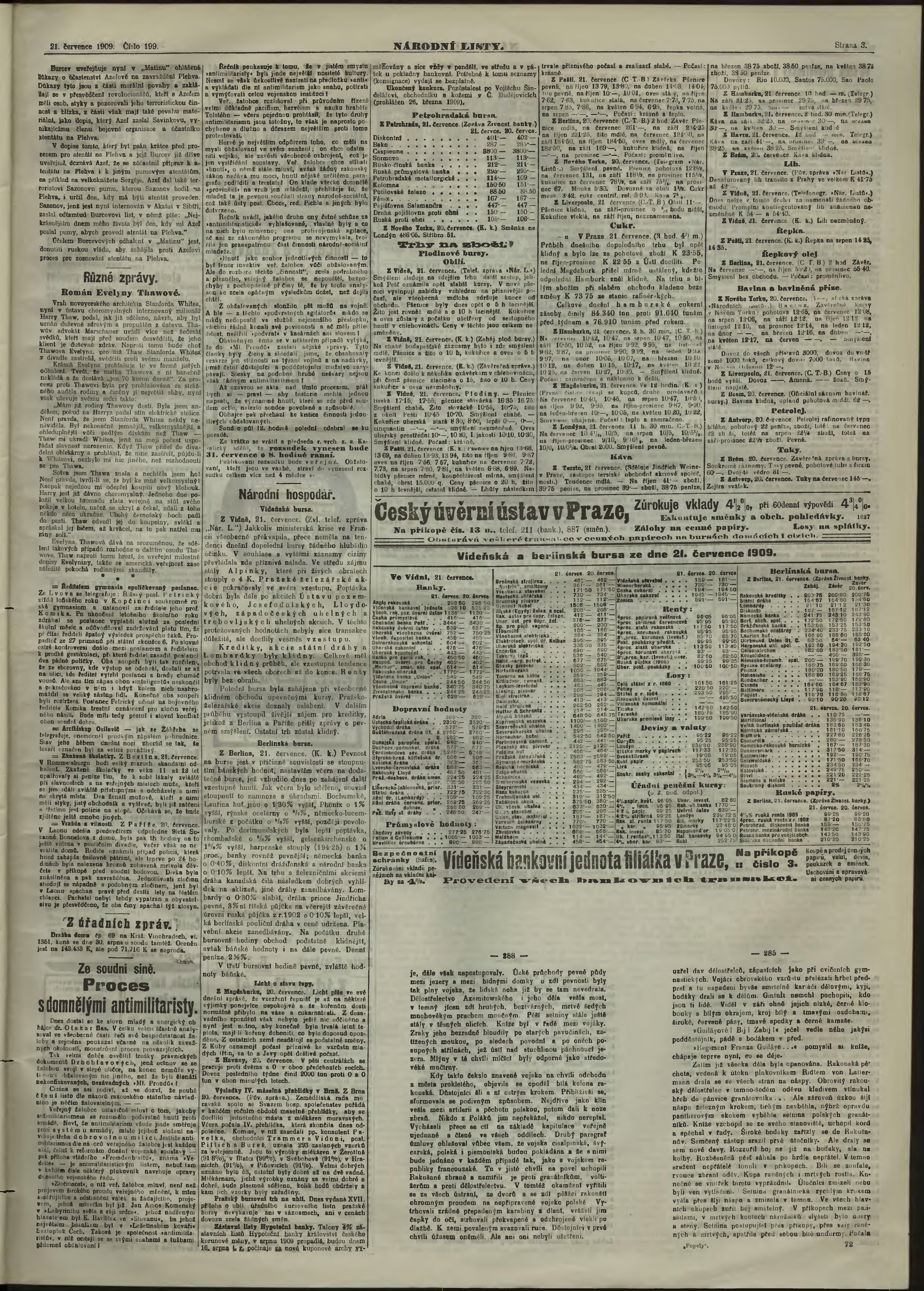 * Datum vydání výtisku: 21.7.1909 Číslo výtisku: 199 Poznámky k výtisku: večerní vydání;