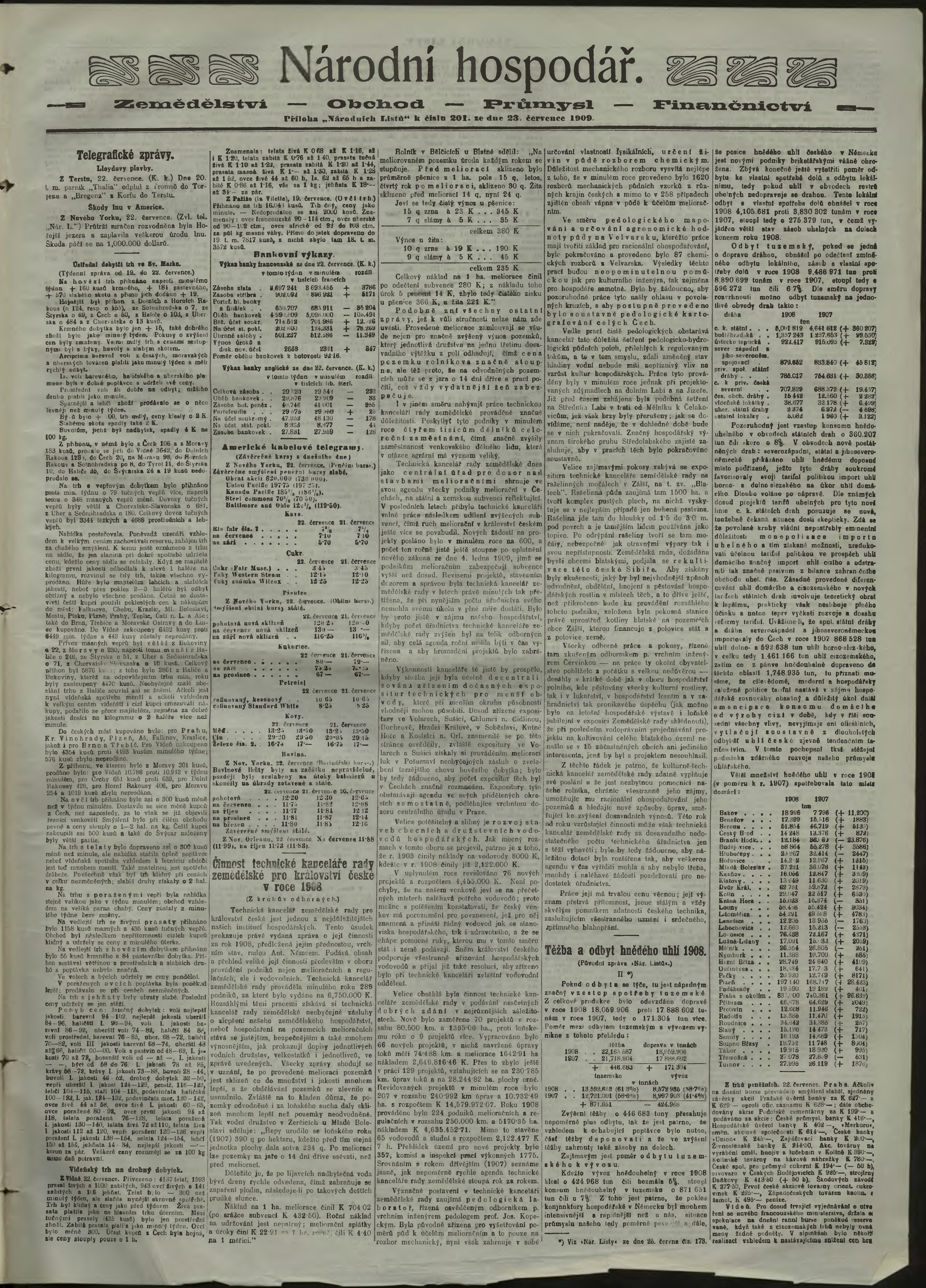 * Datum vydání výtisku: 23.7.1909 Číslo výtisku: 201 Poznámky k výtisku: ranní vydání;
