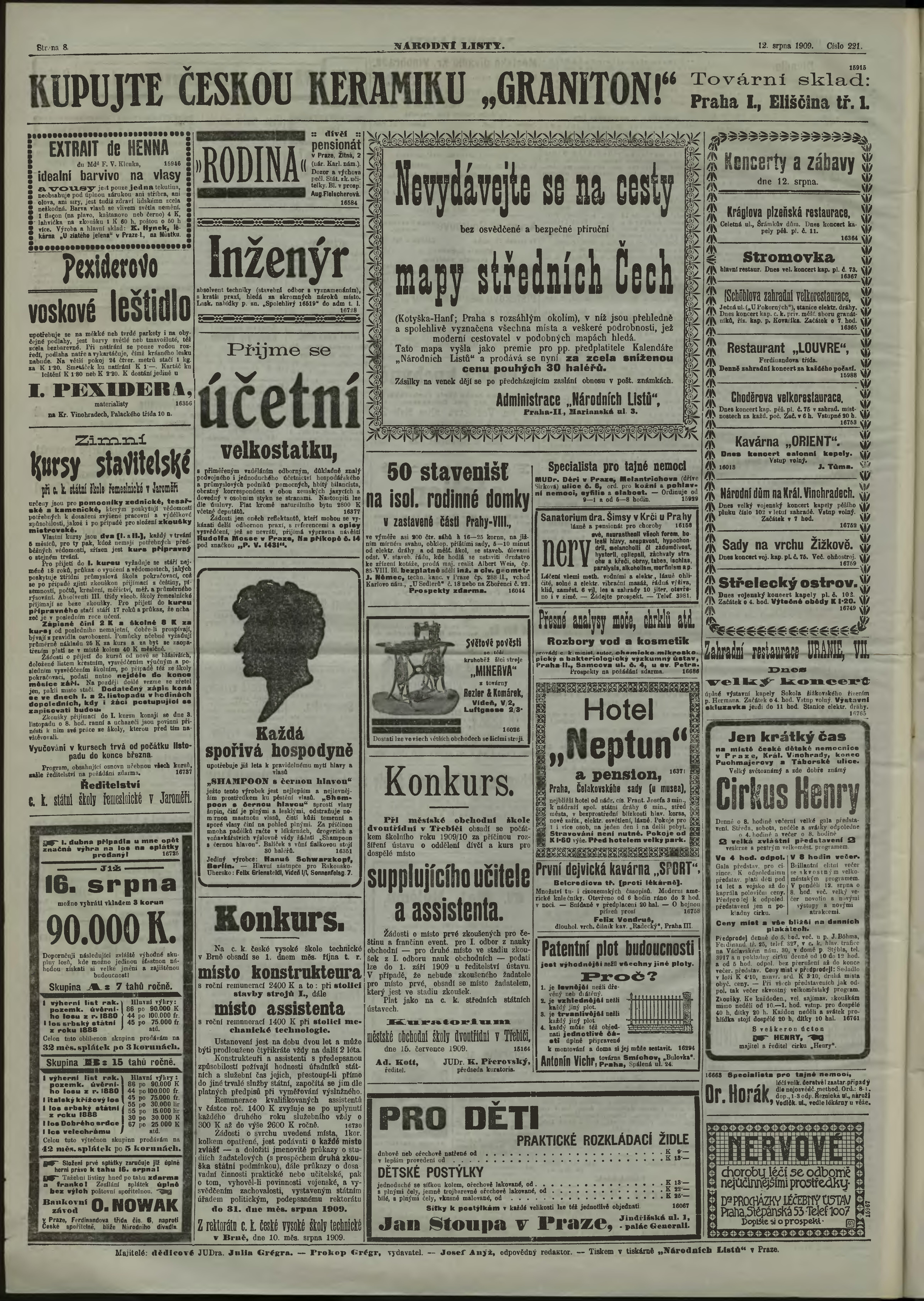 * Datum vydání výtisku: 12.8.1909 Číslo výtisku: 221 Poznámky k výtisku: ranní vydání;