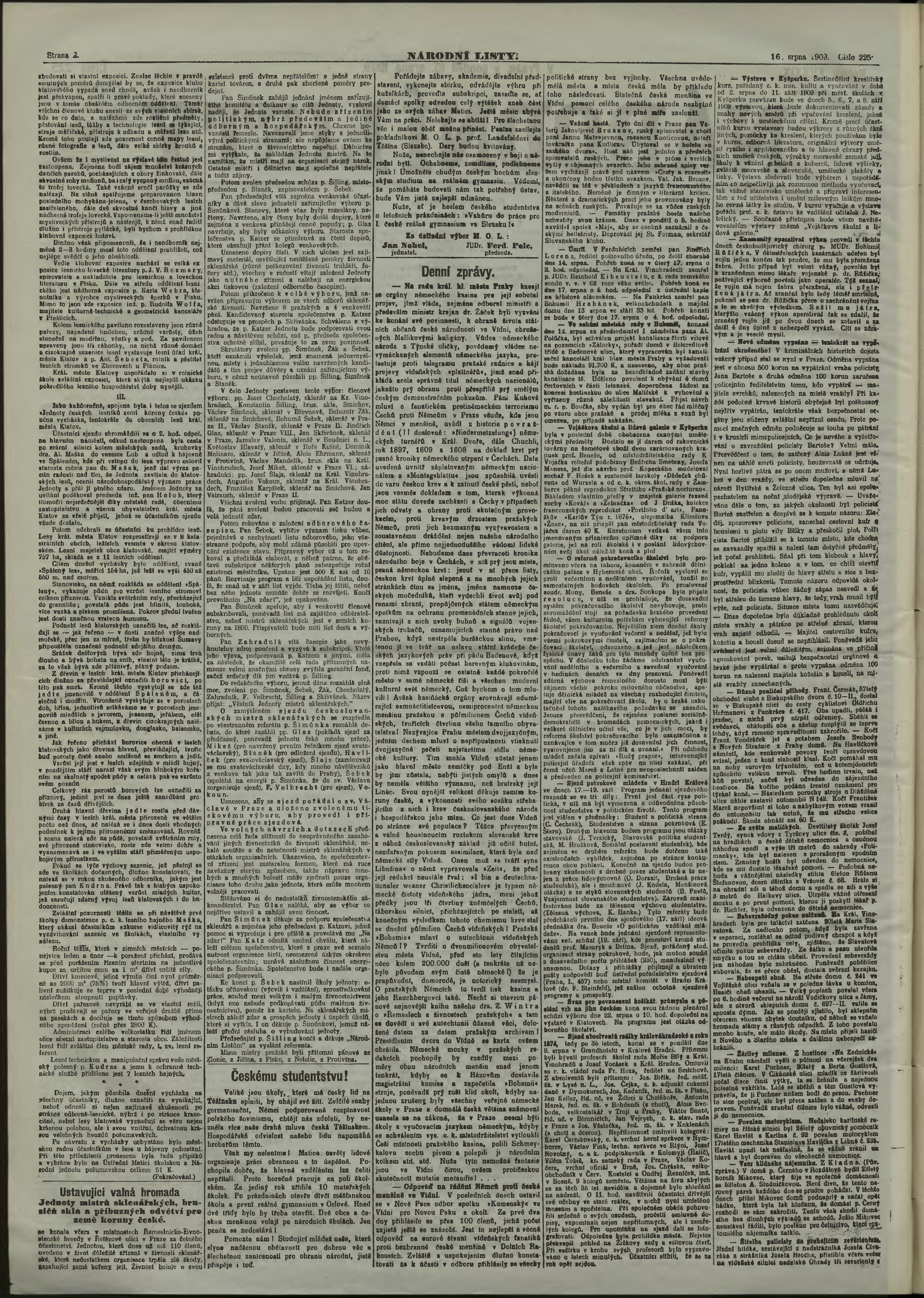 * Datum vydání výtisku: 16.8.1909 Číslo výtisku: 225 Poznámky k výtisku: ranní vydání;