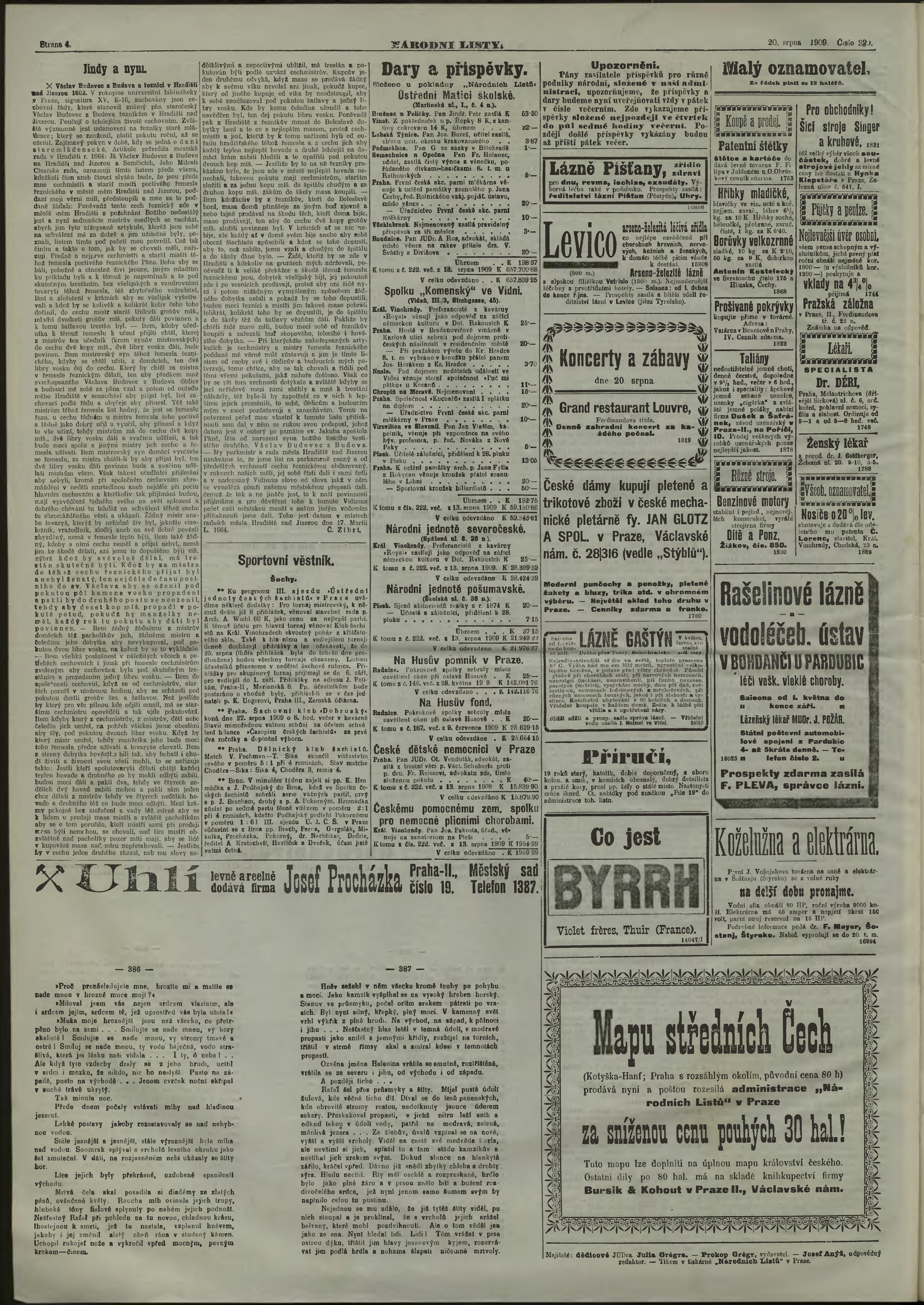 * Datum vydání výtisku: 20.8.1909 Číslo výtisku: 229 Poznámky k výtisku: večerní vydání;