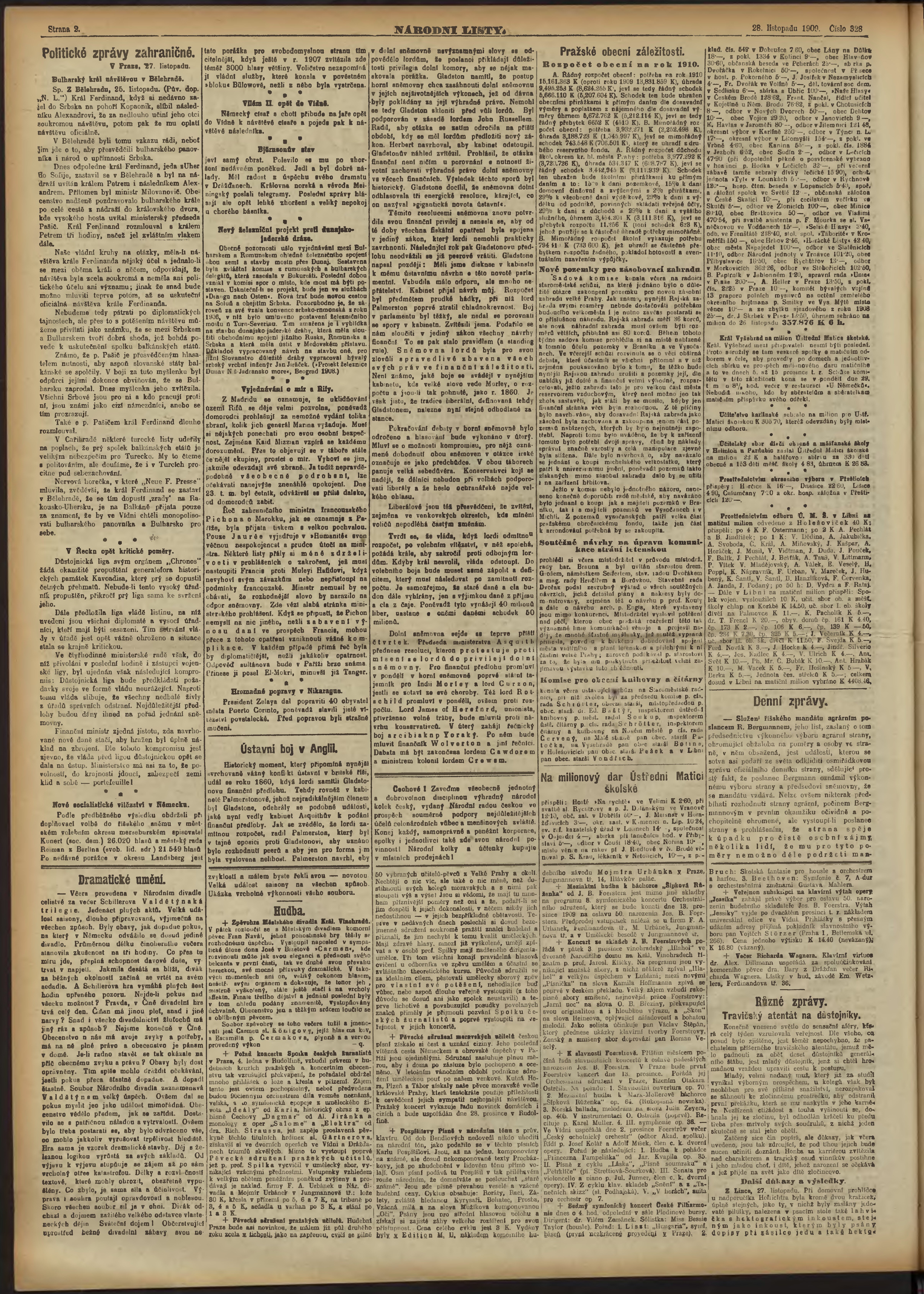 * Datum vydání výtisku: 28.11.1909 Číslo výtisku: 328 Poznámky k výtisku: ranní vydání;