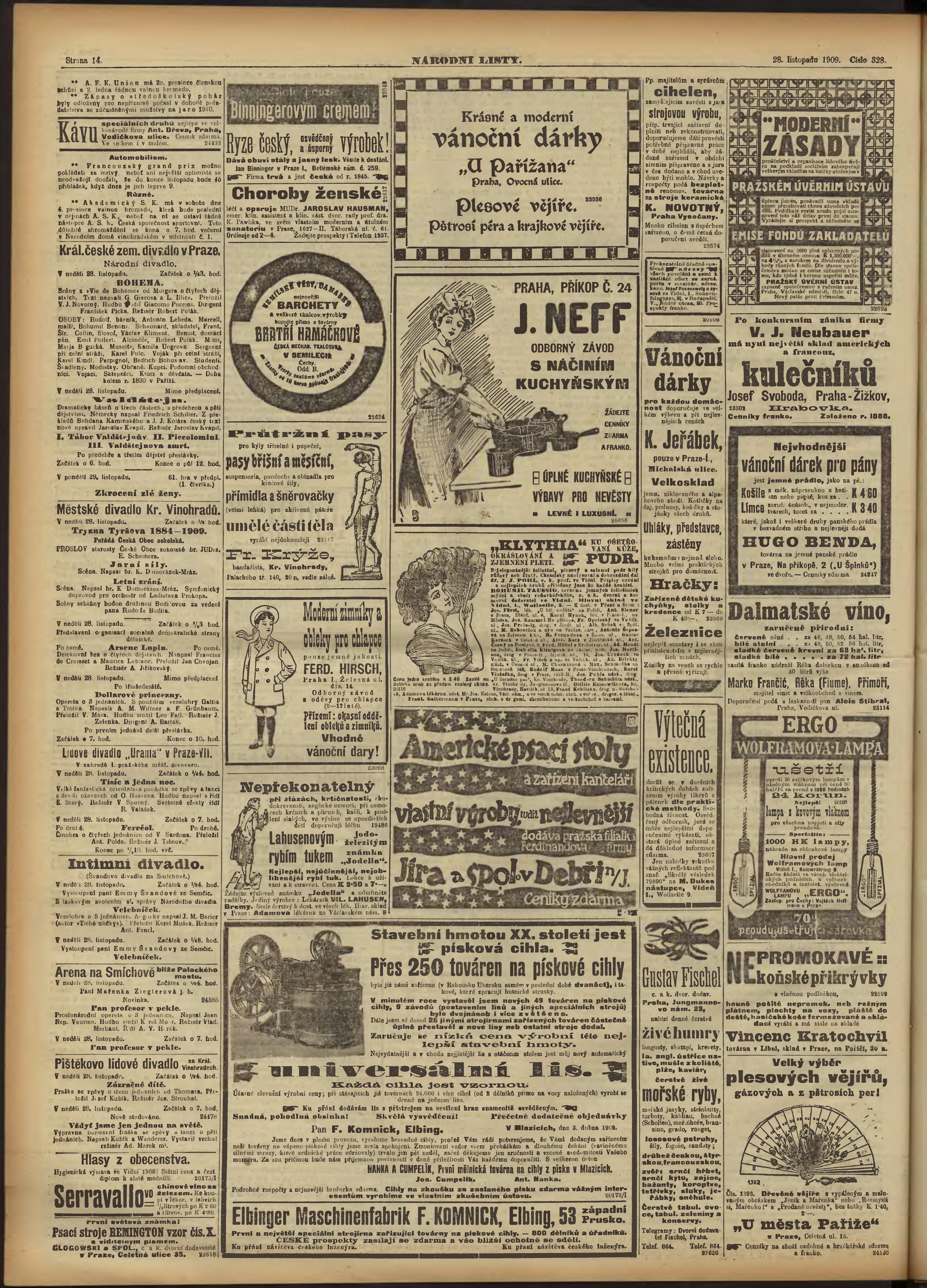 * Datum vydání výtisku: 28.11.1909 Číslo výtisku: 328 Poznámky k výtisku: ranní vydání;
