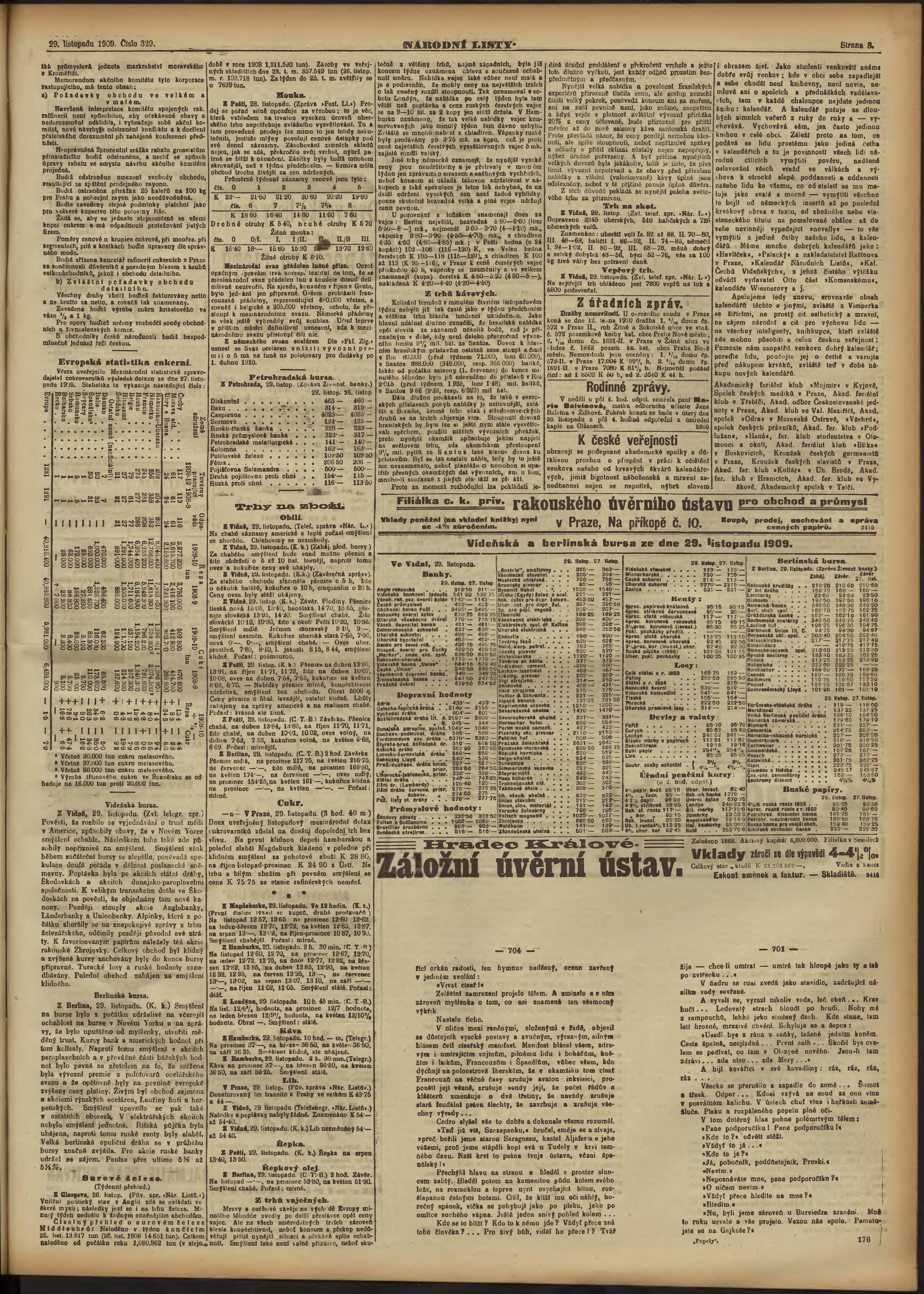 * Datum vydání výtisku: 29.11.1909 Číslo výtisku: 329 Poznámky k výtisku: večerní vydání;