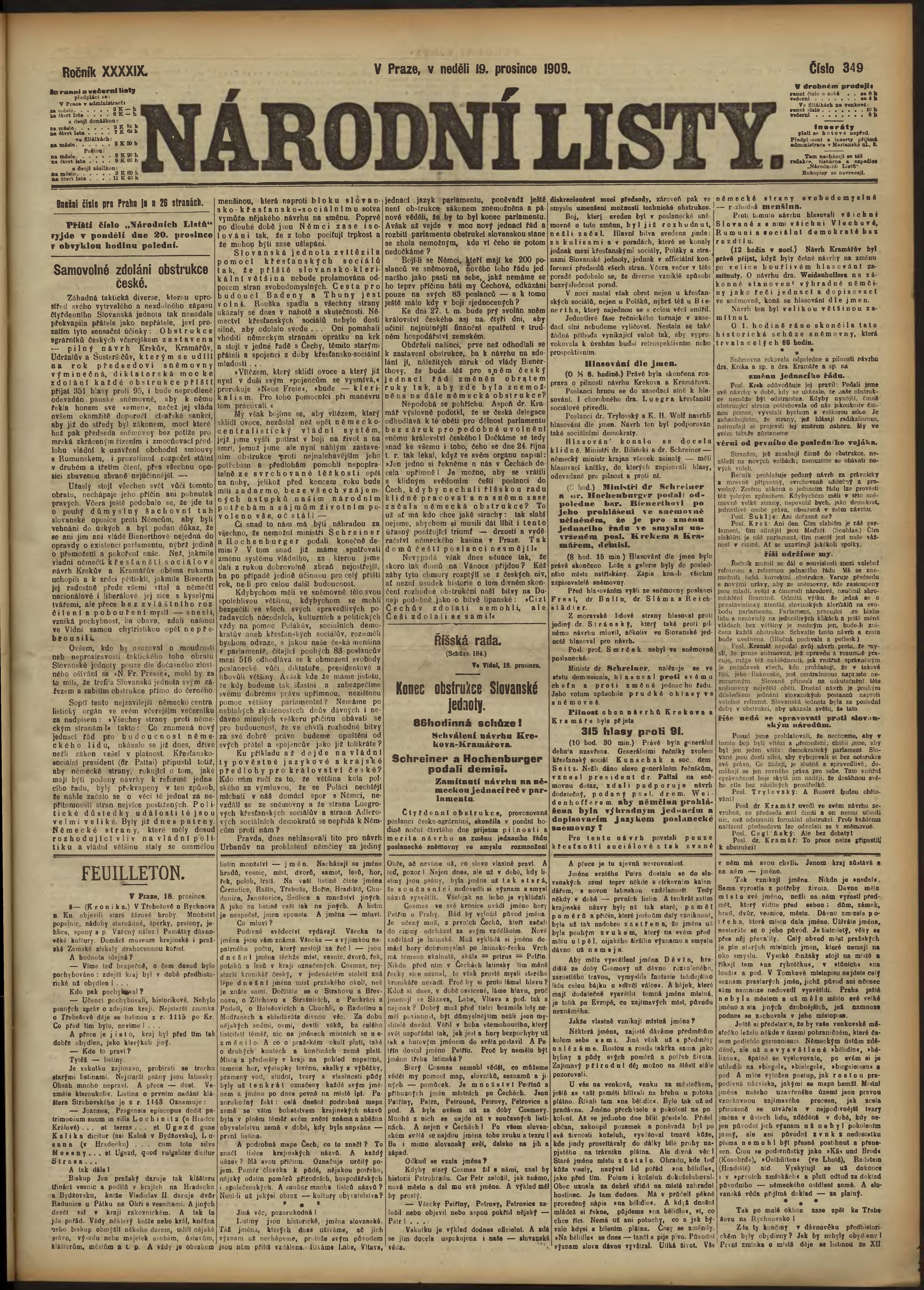 * Datum vydání výtisku: 19.12.1909 Číslo výtisku: 349 Poznámky k výtisku: ranní vydání;