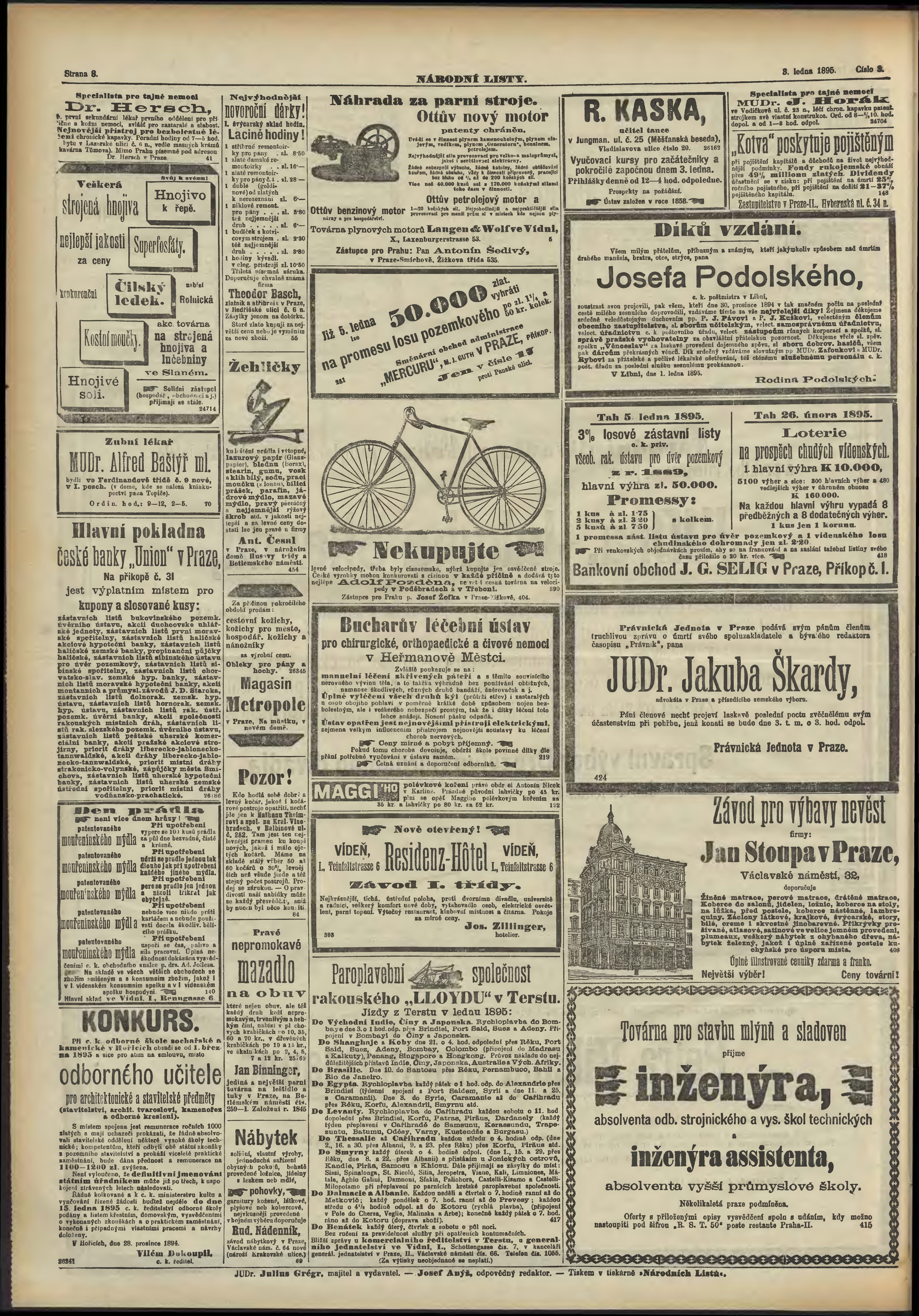 * Datum vydání výtisku: 3.1.1895 Číslo výtisku: 3