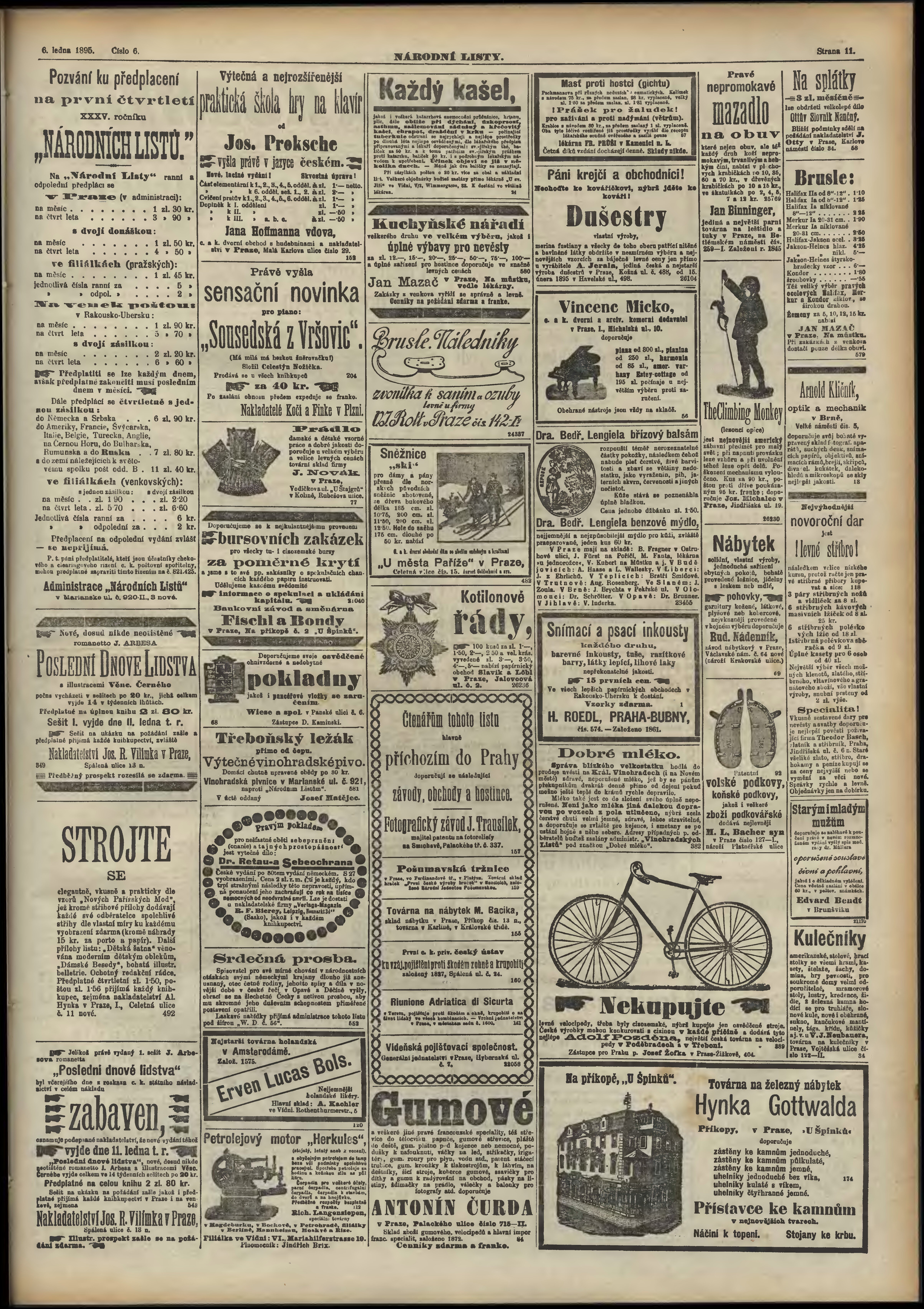 * Datum vydání výtisku: 6.1.1895 Číslo výtisku: 6