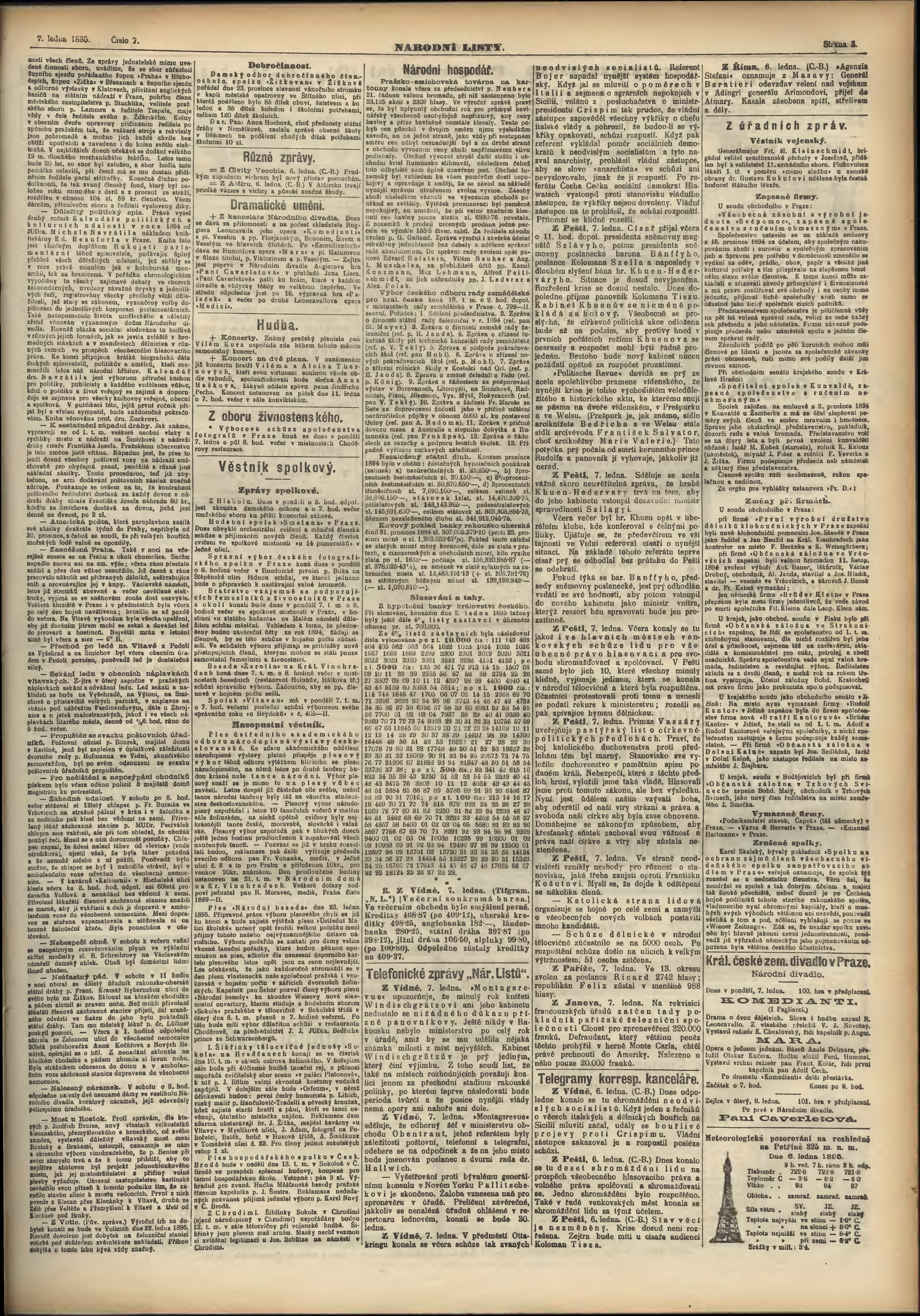 * Datum vydání výtisku: 7.1.1895 Číslo výtisku: 7