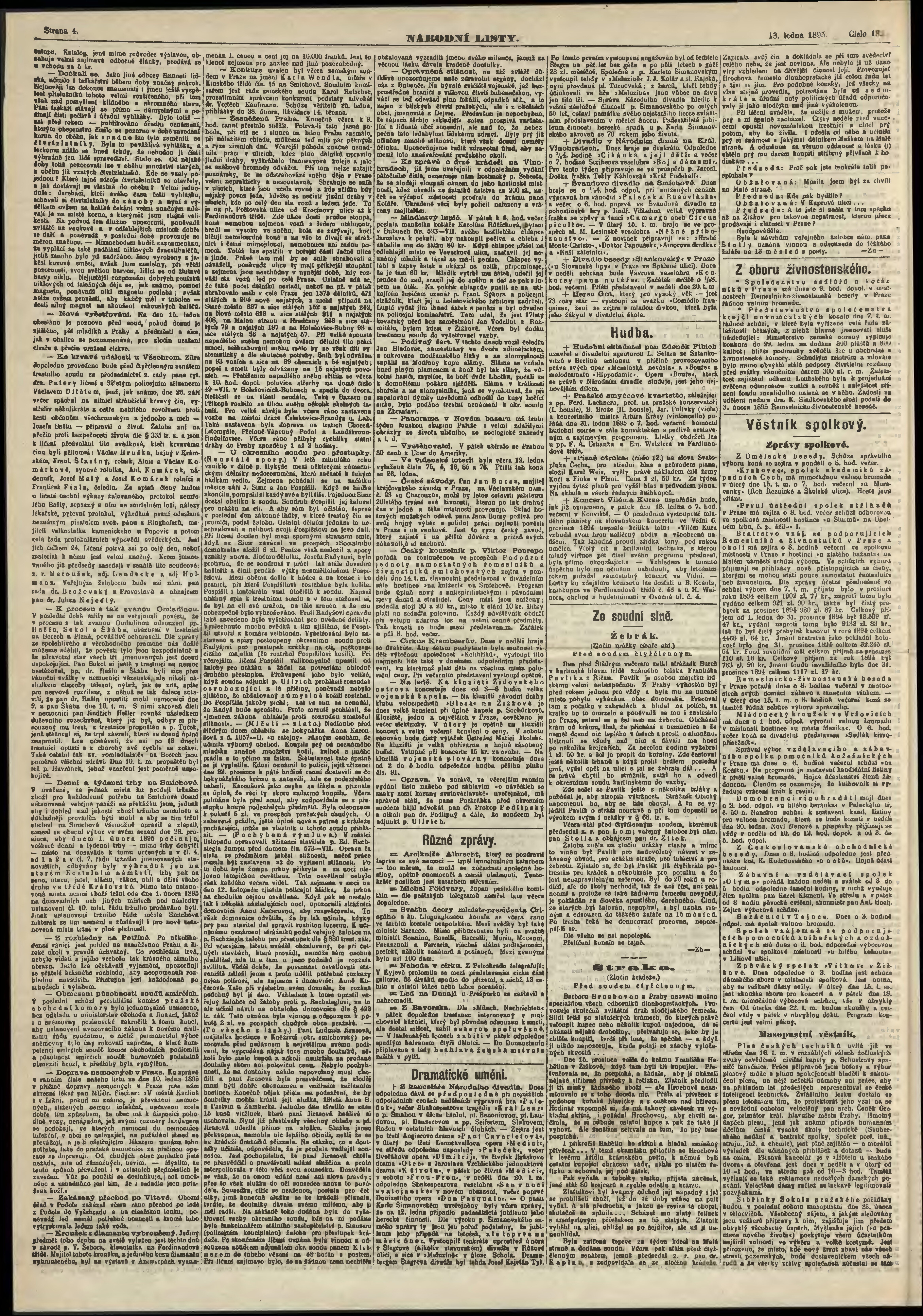 * Datum vydání výtisku: 13.1.1895 Číslo výtisku: 13