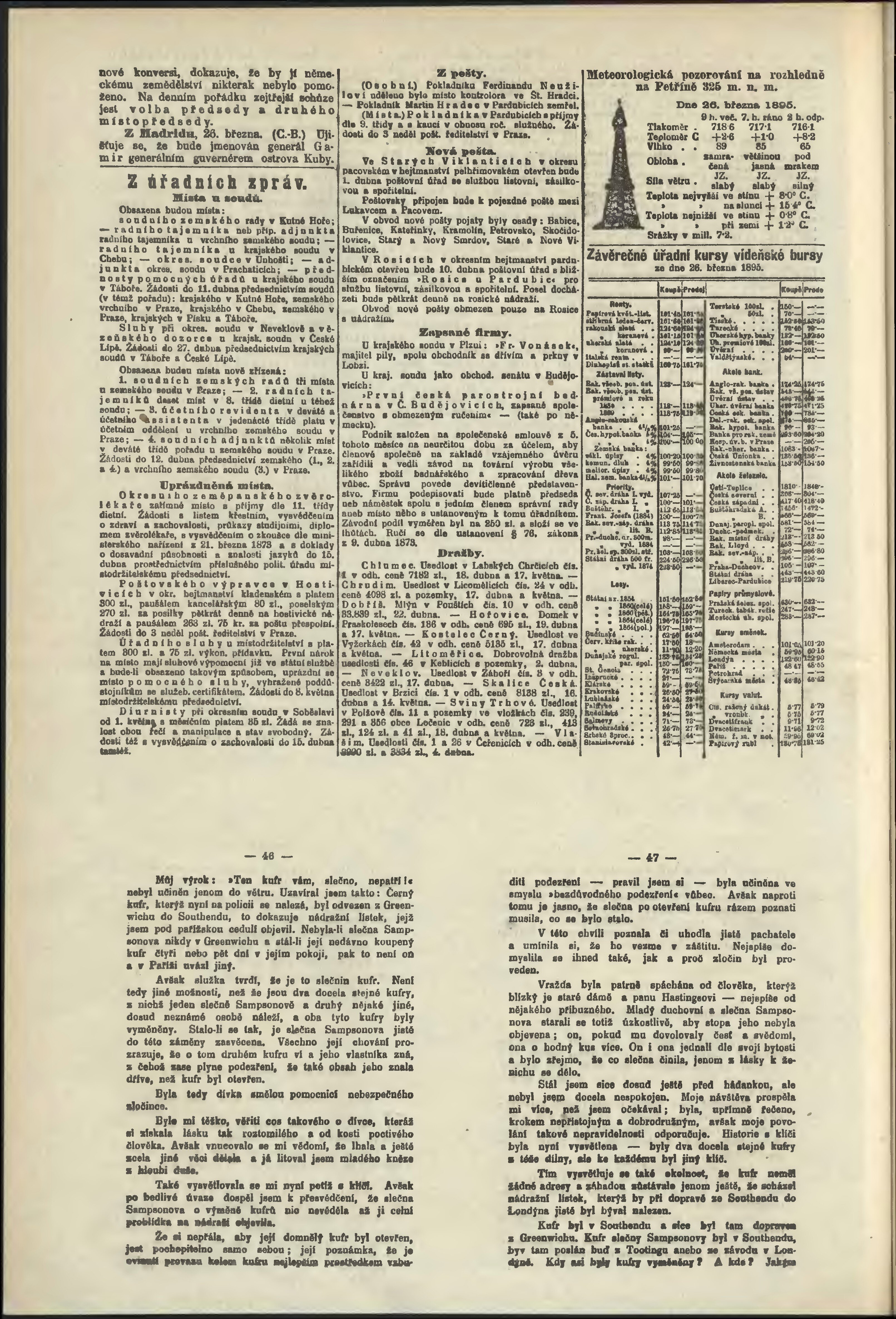 * Datum vydání výtisku: 27.3.1895 Číslo výtisku: 85 Poznámky k výtisku: odpolední vydání; č. 86 (85) chybný údaj v číslování;
