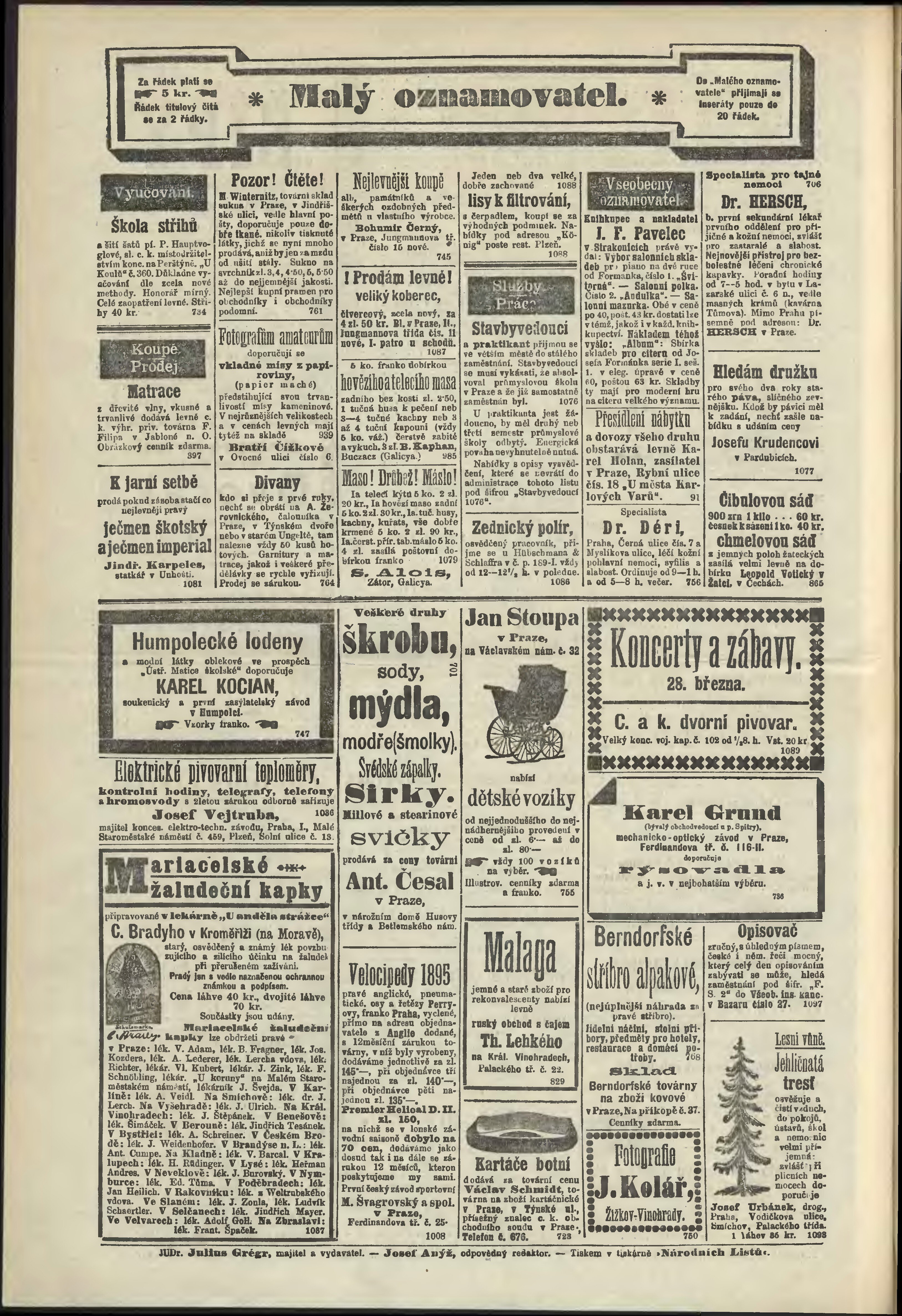 * Datum vydání výtisku: 28.3.1895 Číslo výtisku: 86 Poznámky k výtisku: odpolední vydání; č. 87 (86) chybný údaj v číslování;