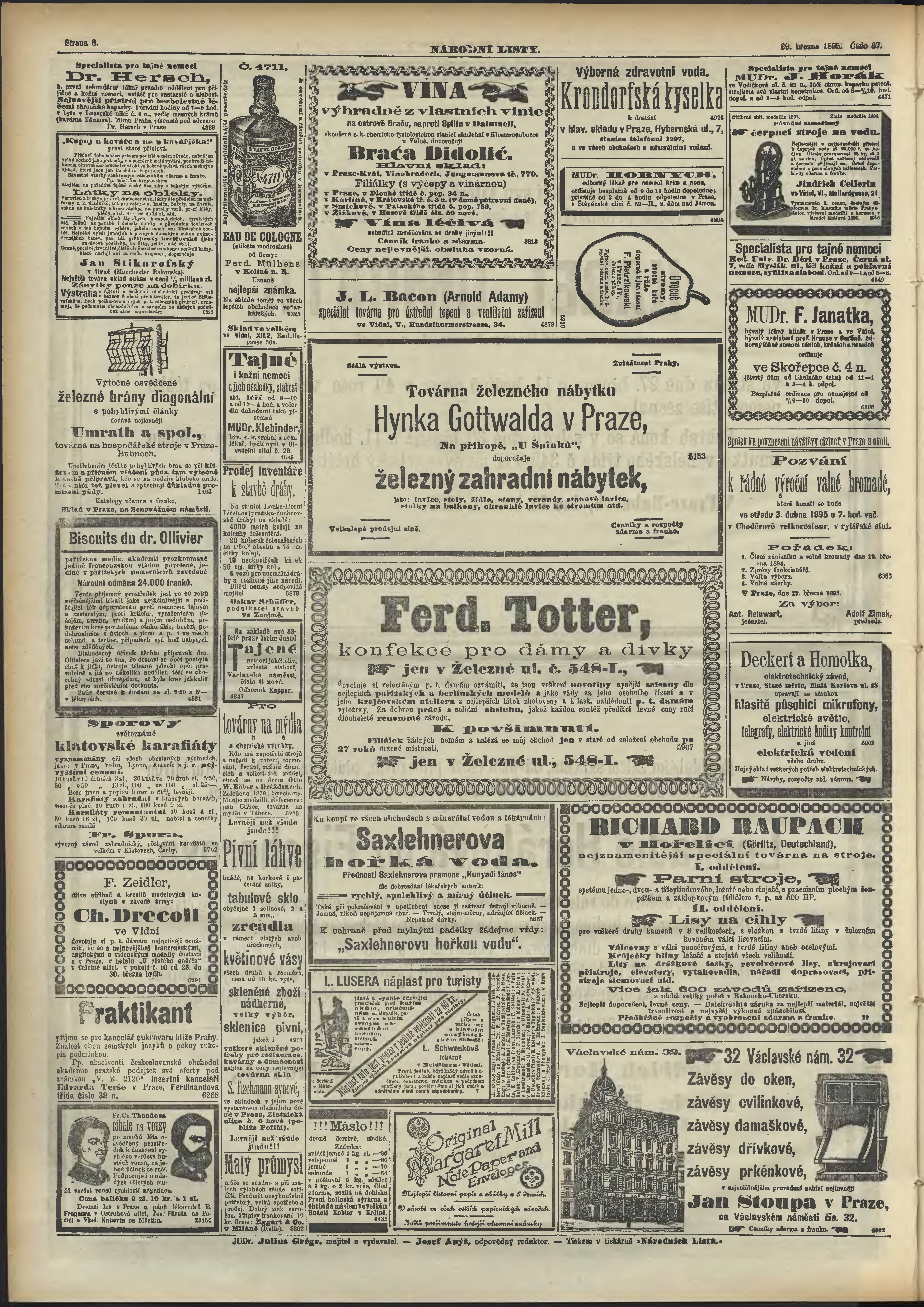 * Datum vydání výtisku: 29.3.1895 Číslo výtisku: 87