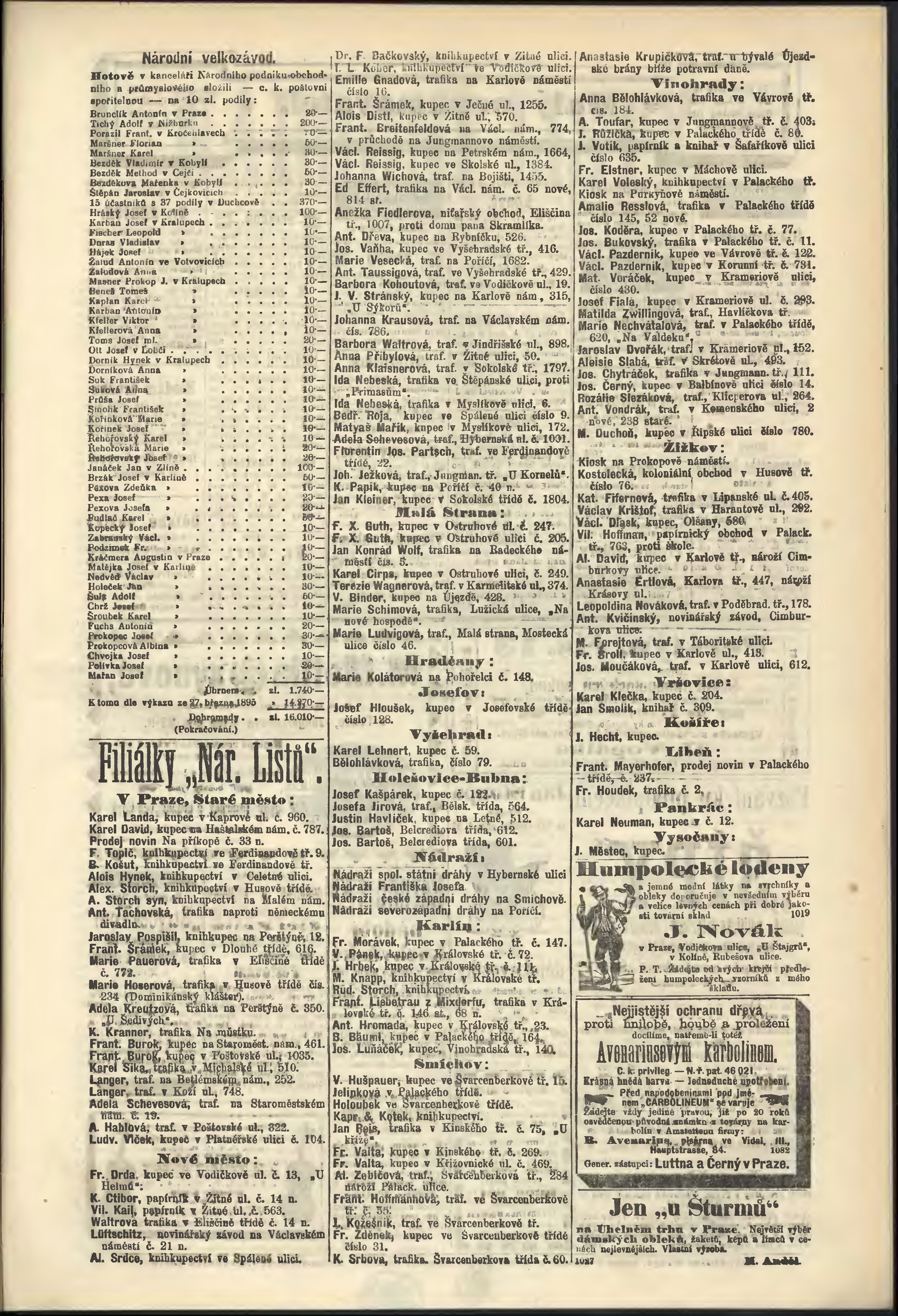 * Datum vydání výtisku: 29.3.1895 Číslo výtisku: 87 Poznámky k výtisku: odpolední vydání;