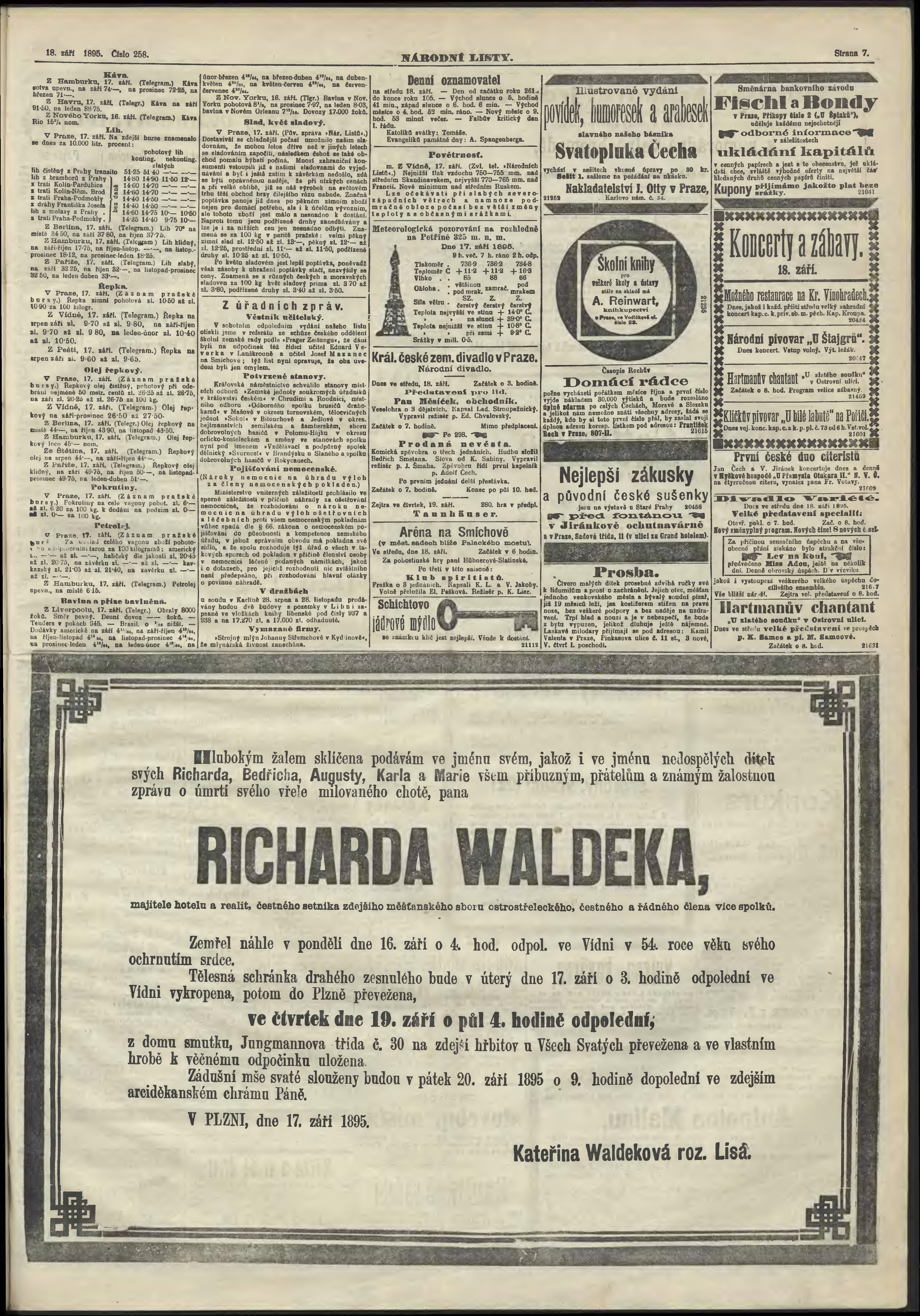 * Datum vydání výtisku: 18.9.1895 Číslo výtisku: 258