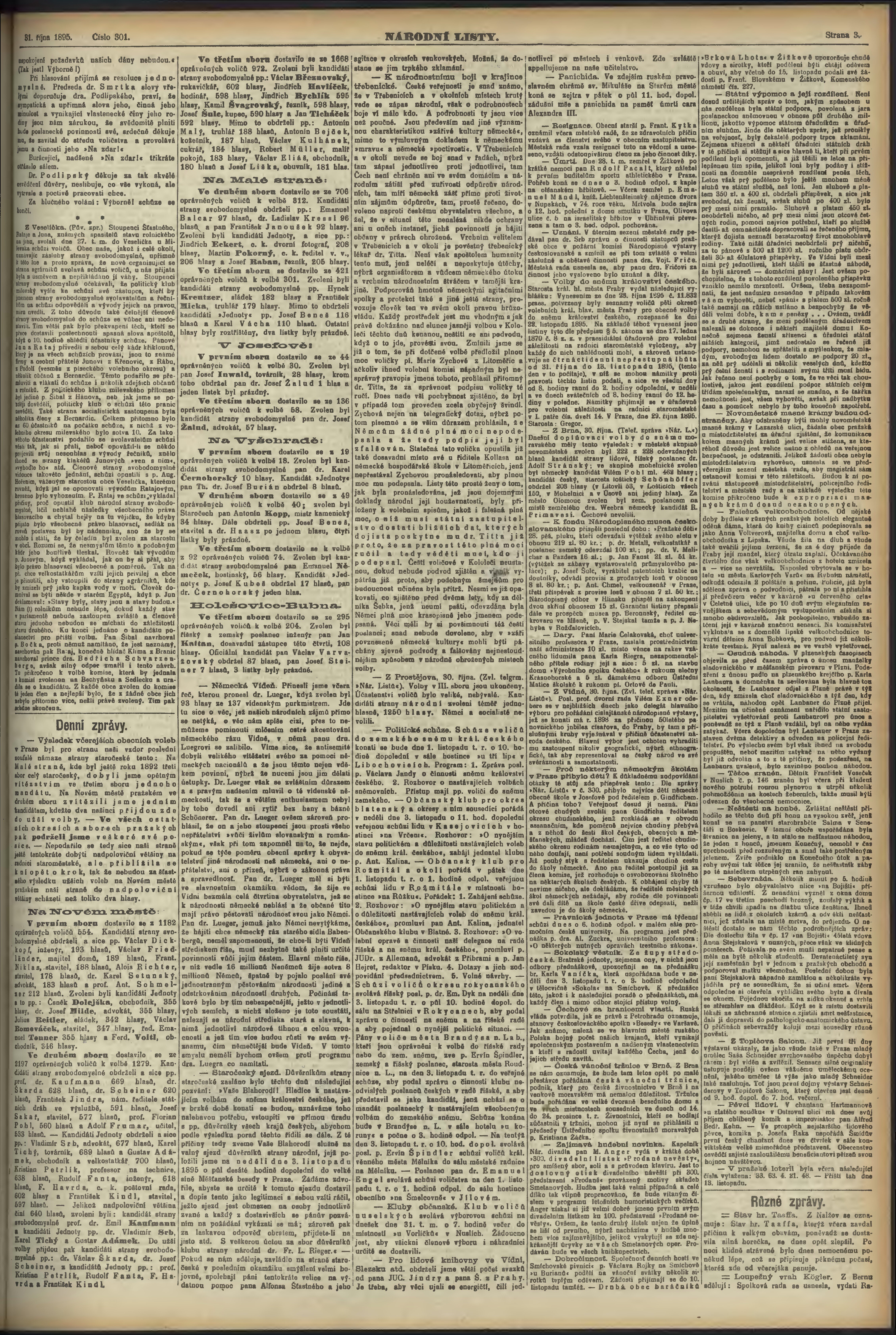 * Datum vydání výtisku: 31.10.1895 Číslo výtisku: 301