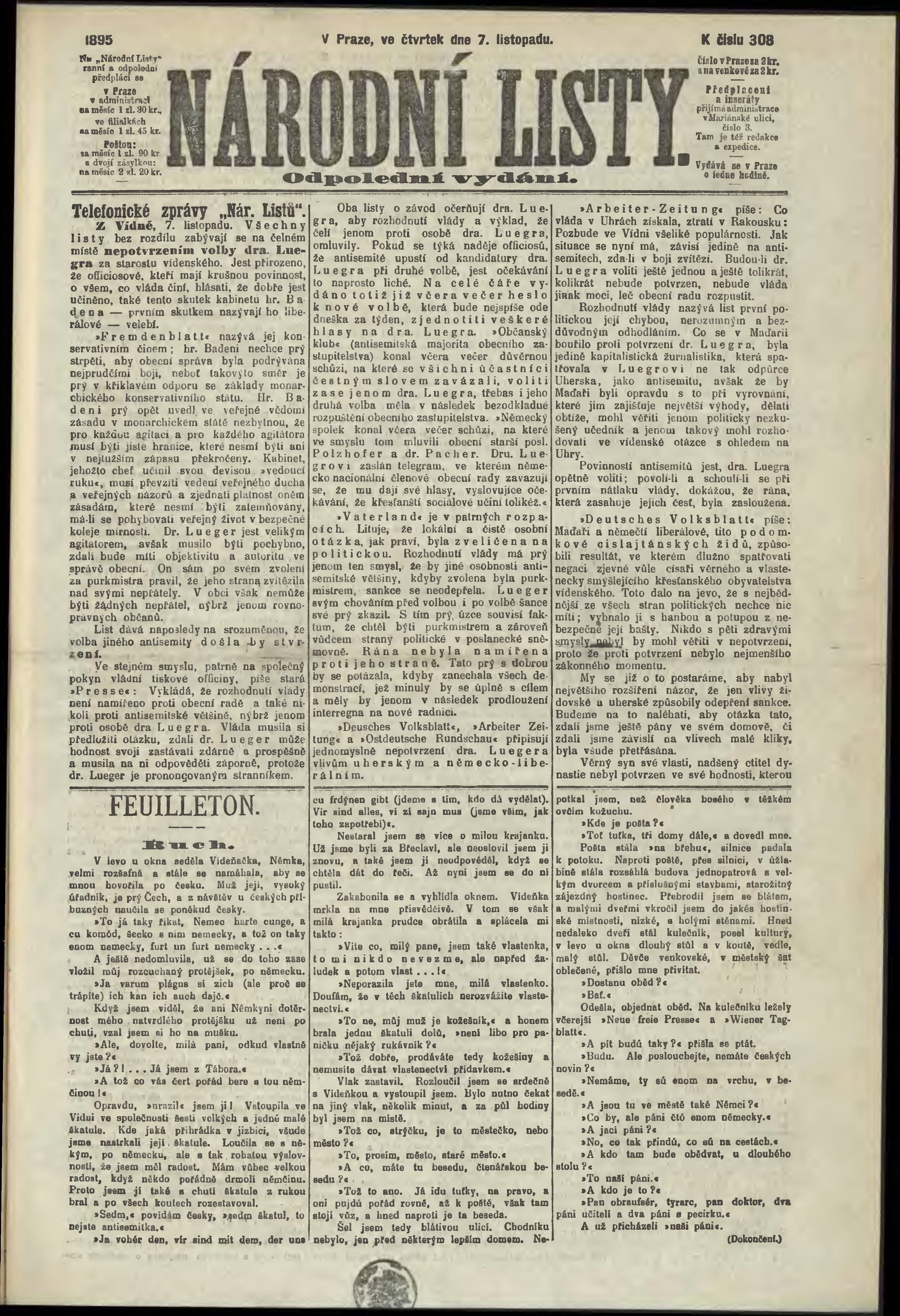 * Datum vydání výtisku: 7.11.1895 Číslo výtisku: 308 Poznámky k výtisku: odpolední vydání;