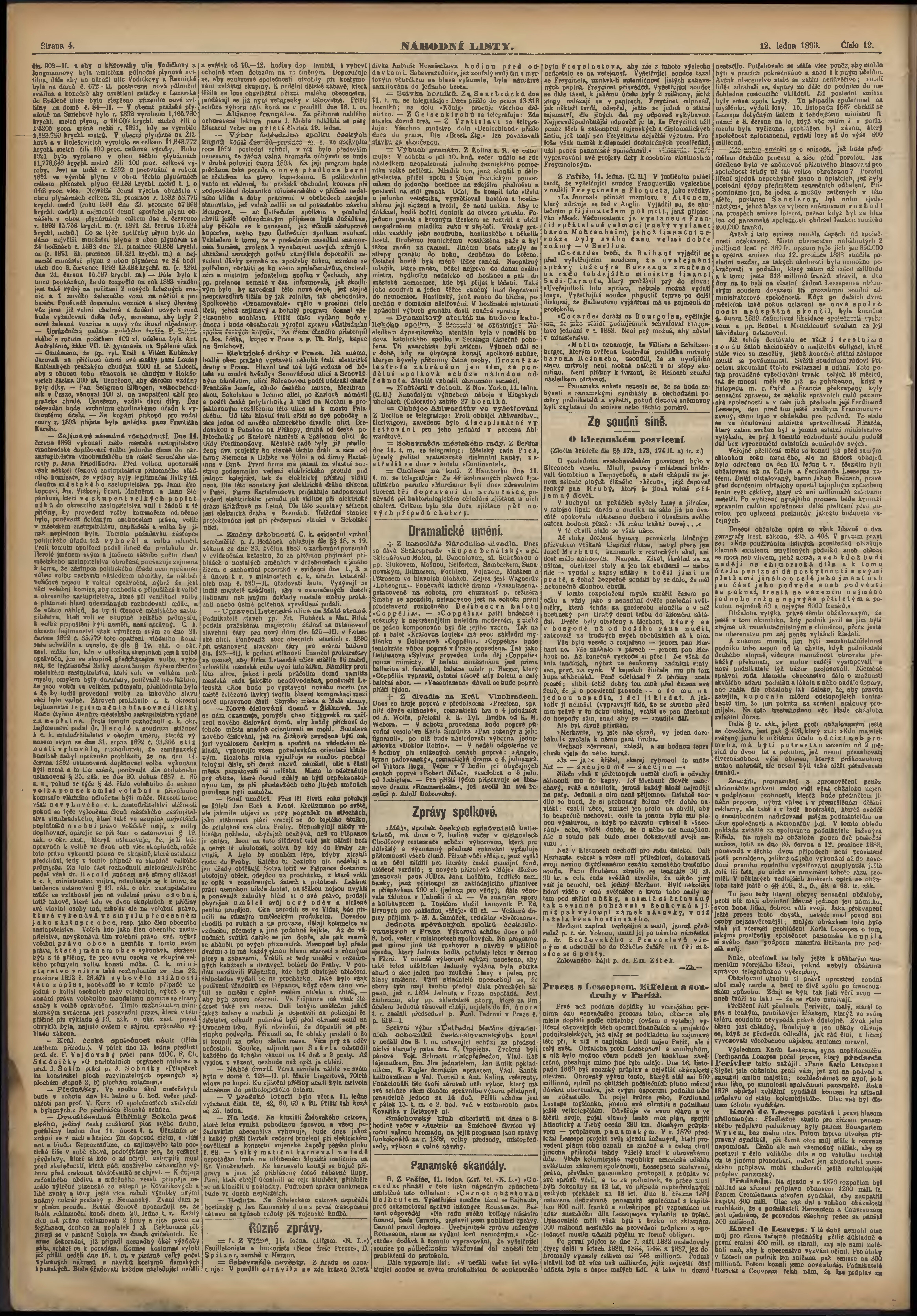 * Datum vydání výtisku: 12.1.1893 Číslo výtisku: 12
