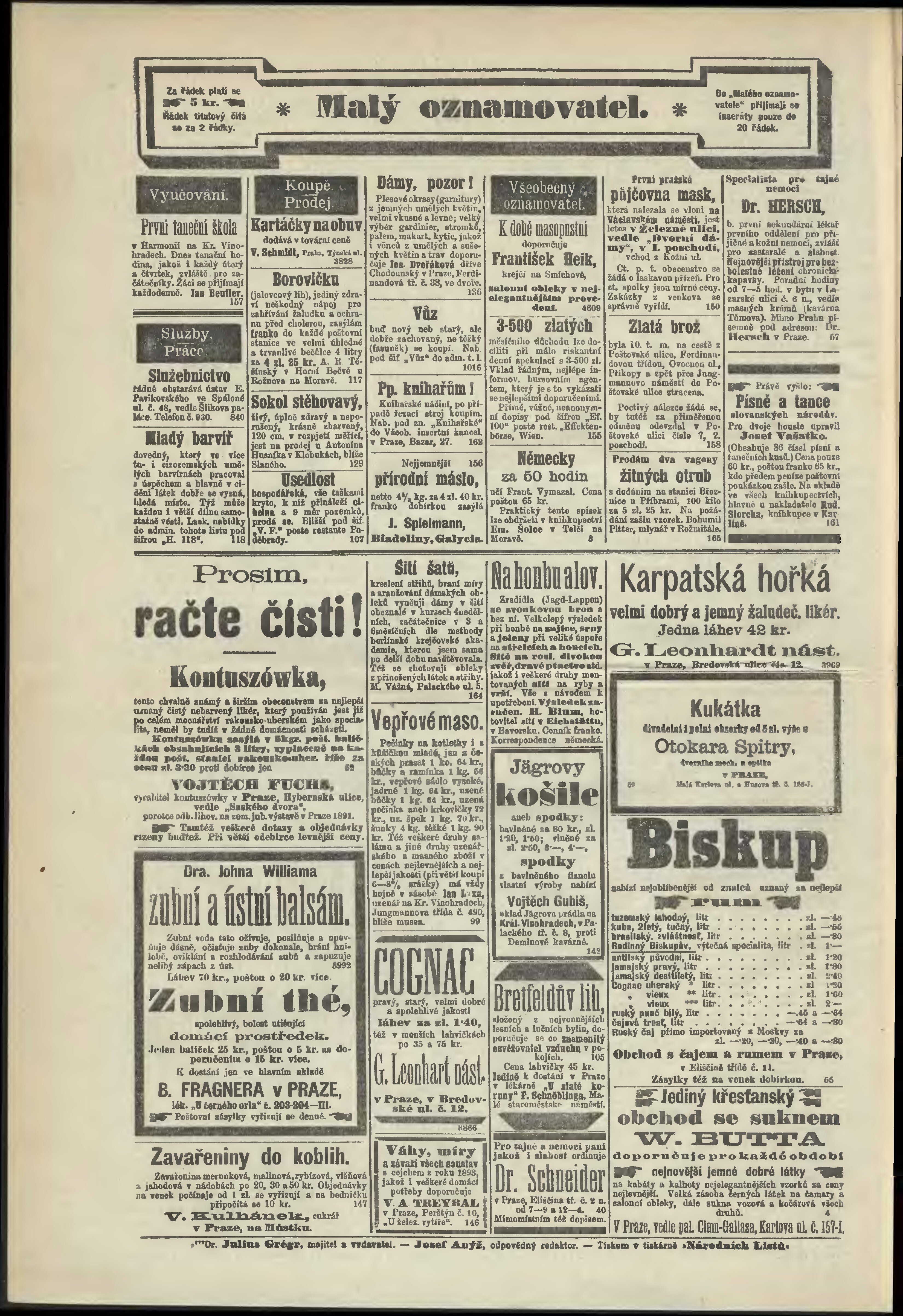 * Datum vydání výtisku: 12.1.1893 Číslo výtisku: 12 Poznámky k výtisku: odpolední vydání;
