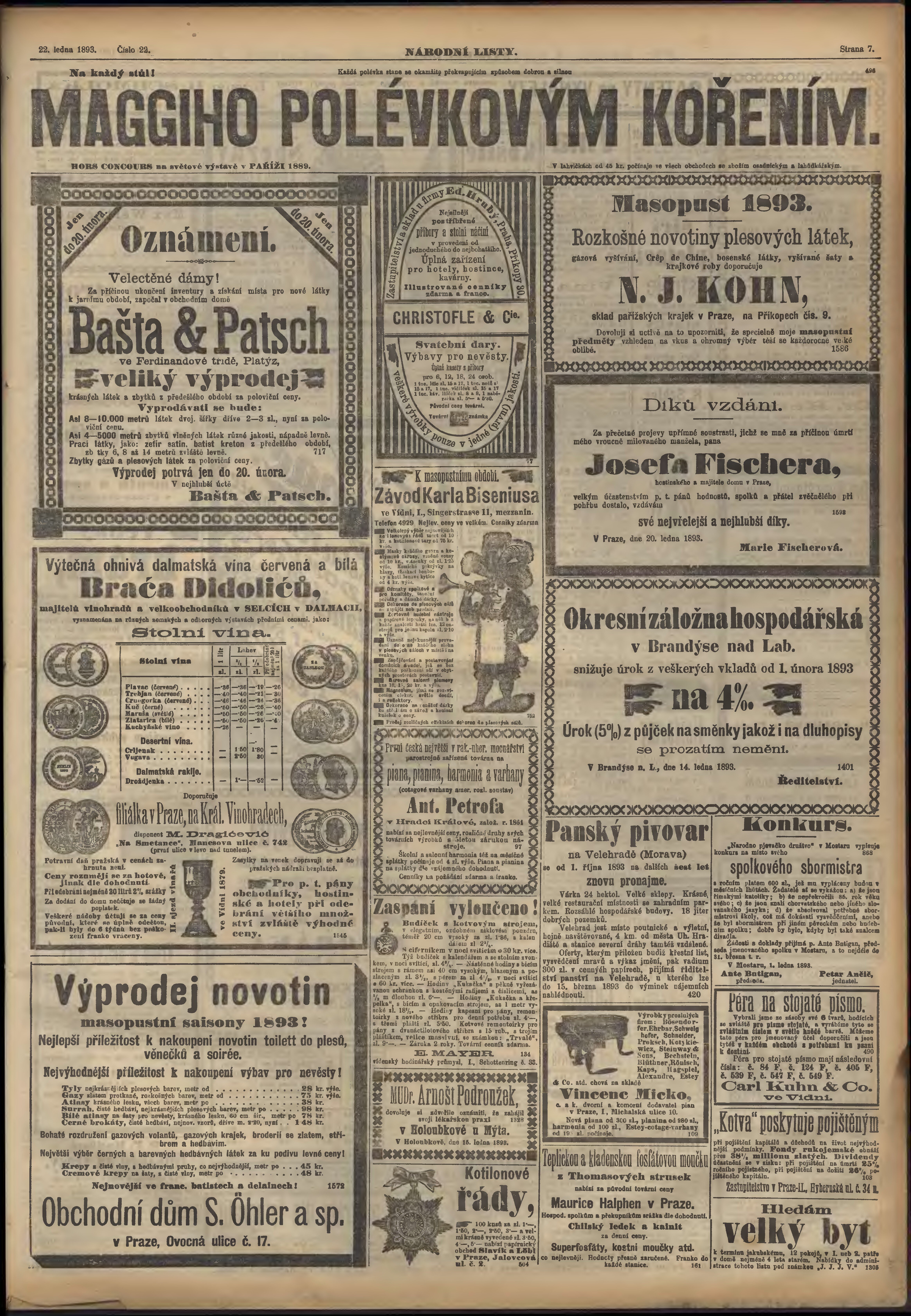 * Datum vydání výtisku: 22.1.1893 Číslo výtisku: 22