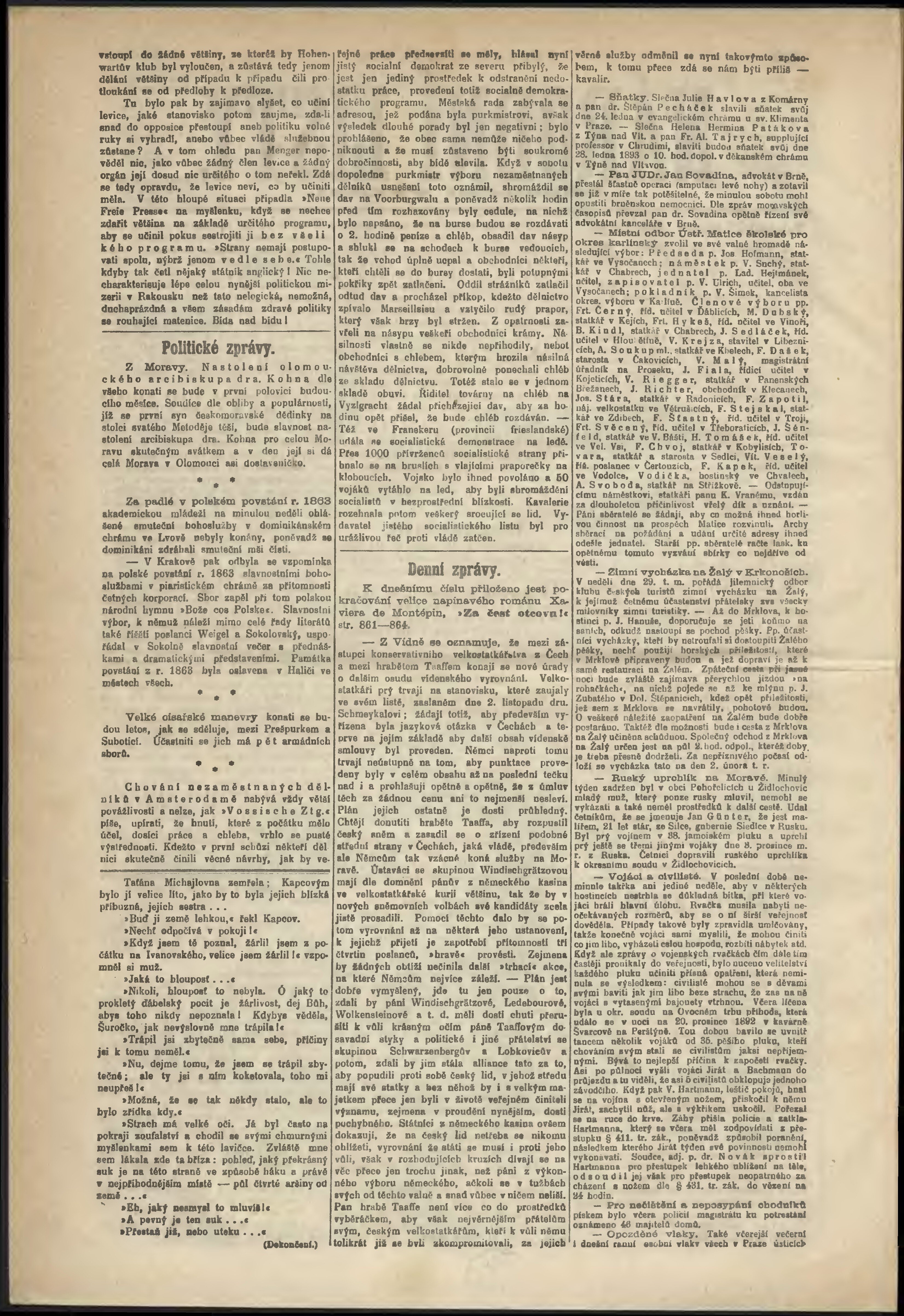 * Datum vydání výtisku: 24.1.1893 Číslo výtisku: 24 Poznámky k výtisku: odpolední vydání;