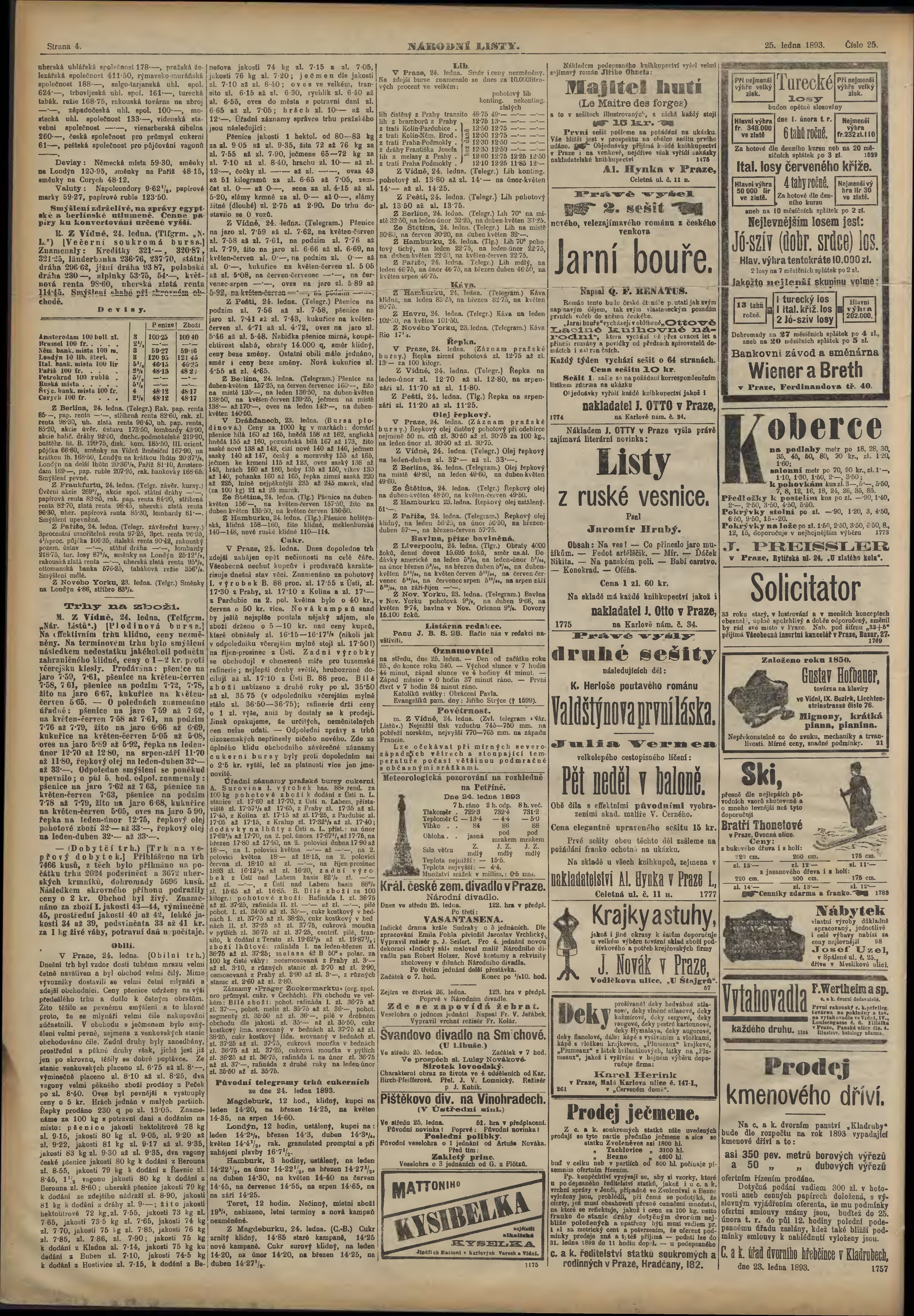 * Datum vydání výtisku: 25.1.1893 Číslo výtisku: 25