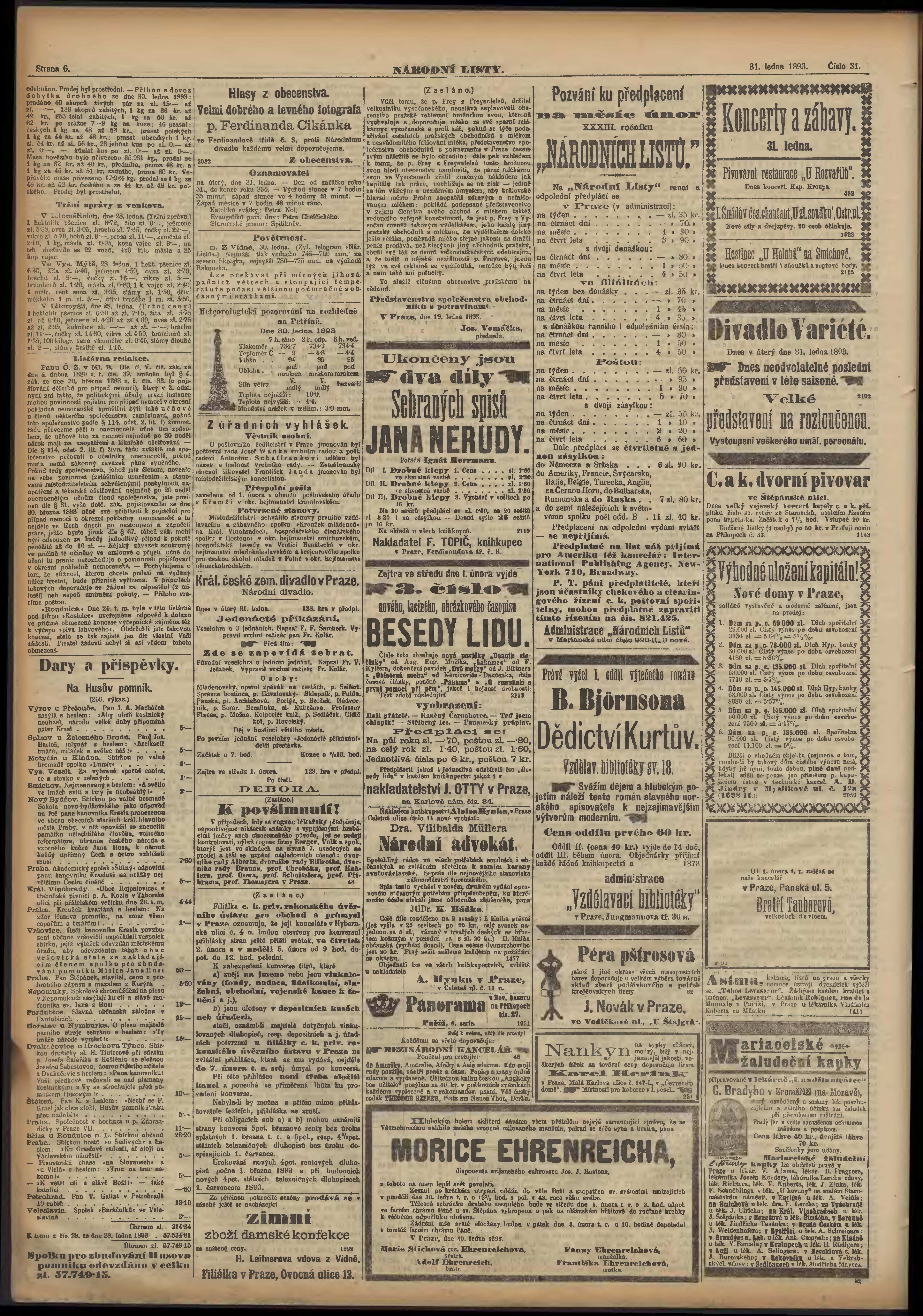 * Datum vydání výtisku: 31.1.1893 Číslo výtisku: 31