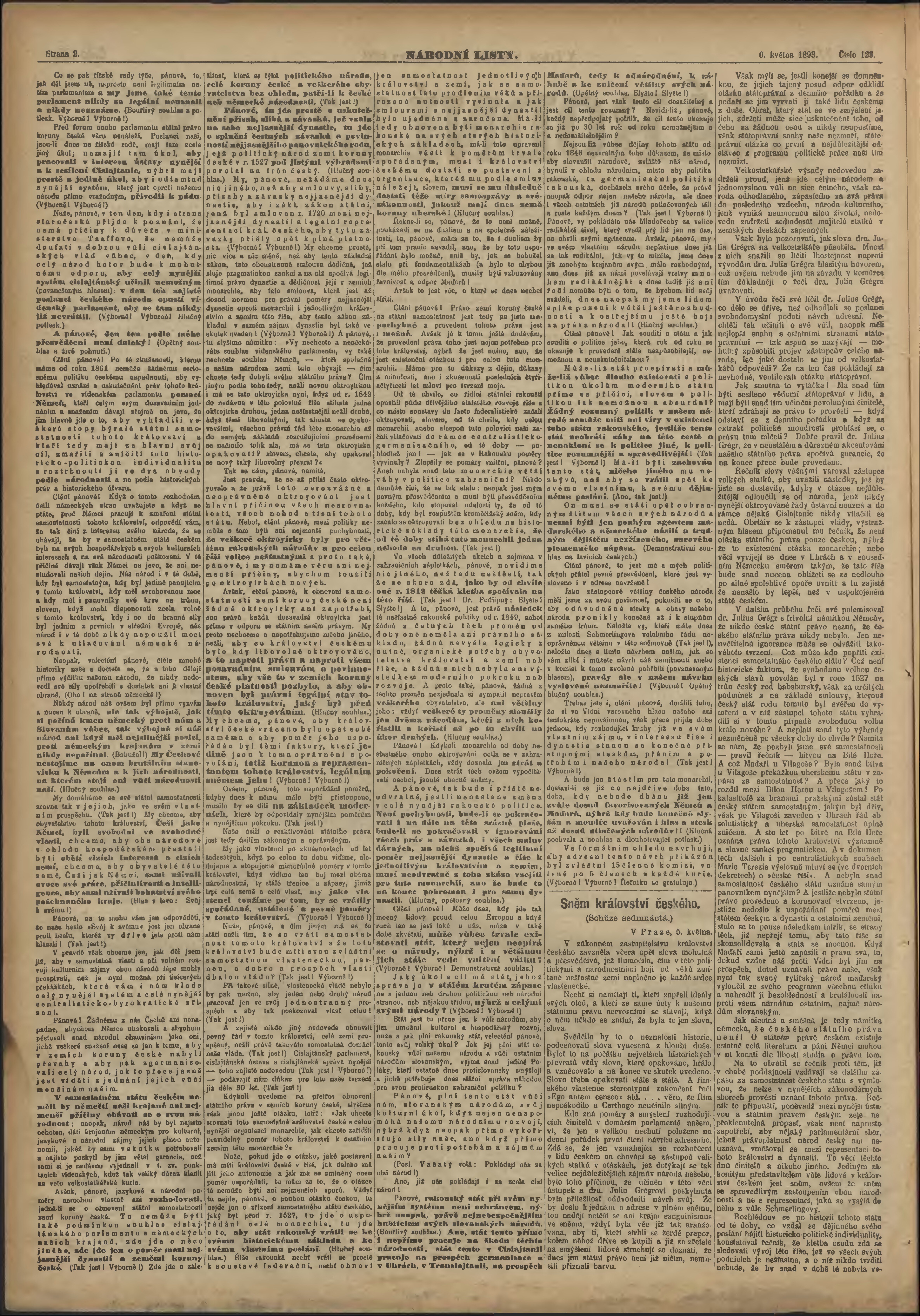 * Datum vydání výtisku: 6.5.1893 Číslo výtisku: 125