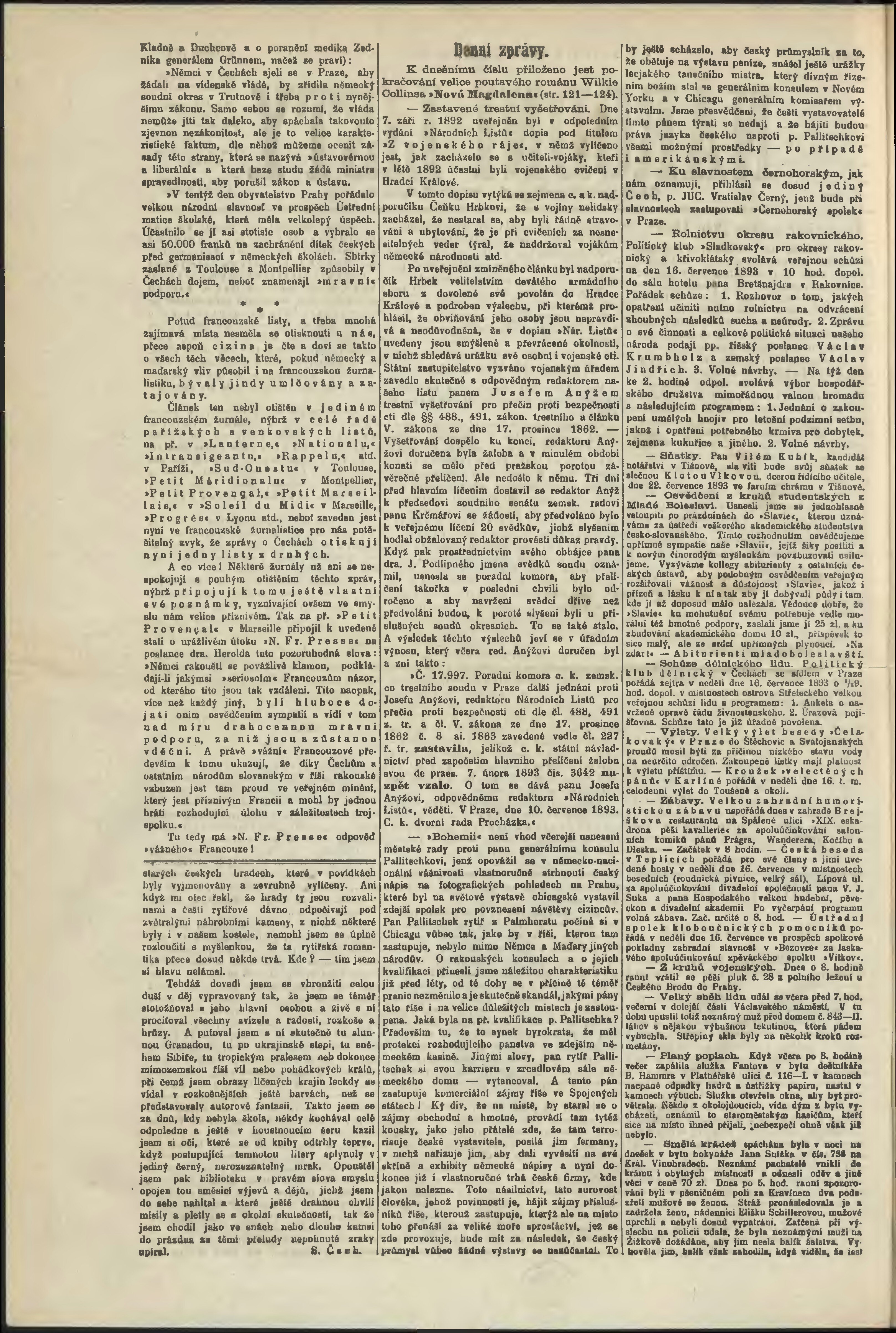 * Datum vydání výtisku: 15.7.1893 Číslo výtisku: 194 Poznámky k výtisku: odpolední vydání;