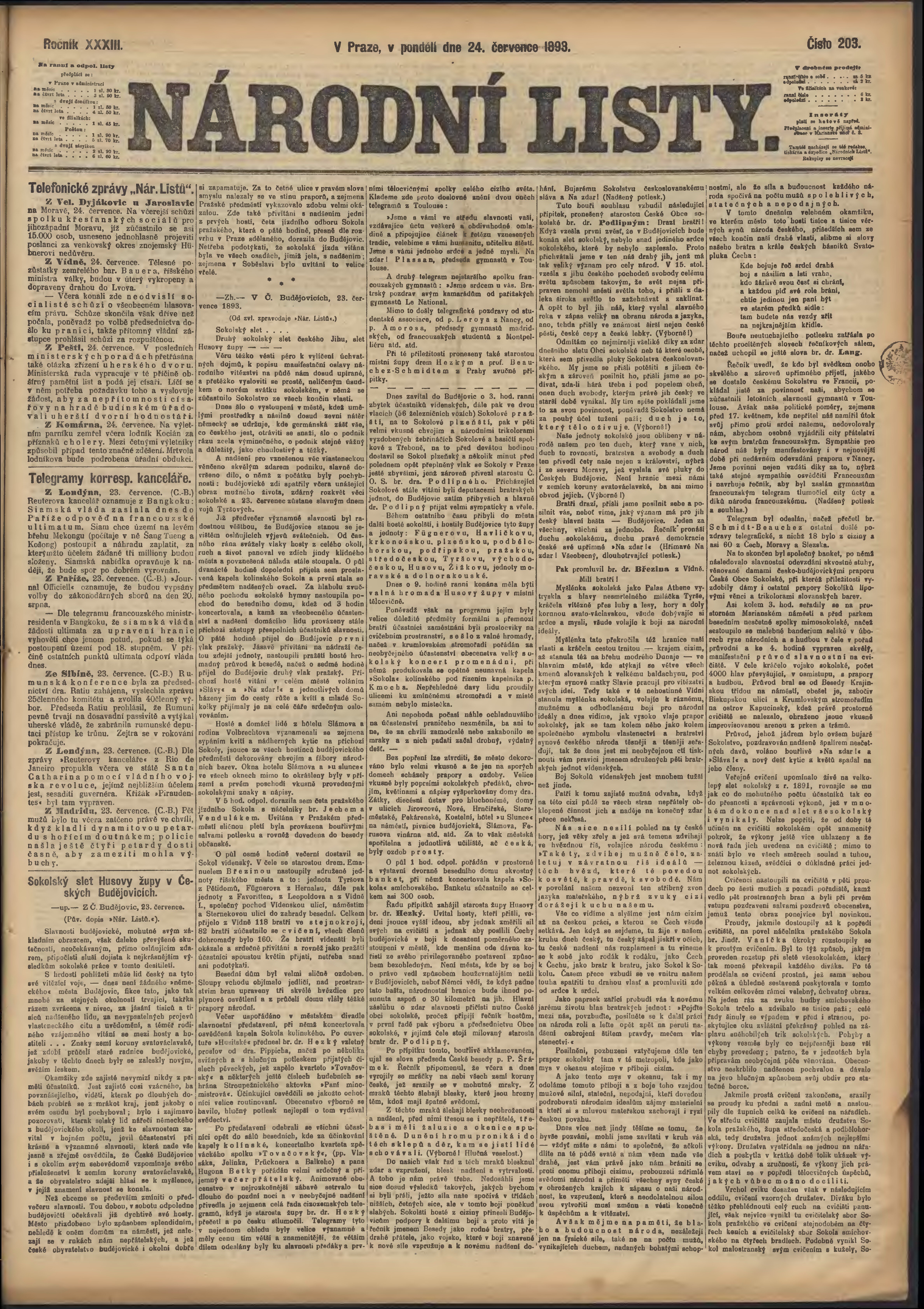 * Datum vydání výtisku: 24.7.1893 Číslo výtisku: 203