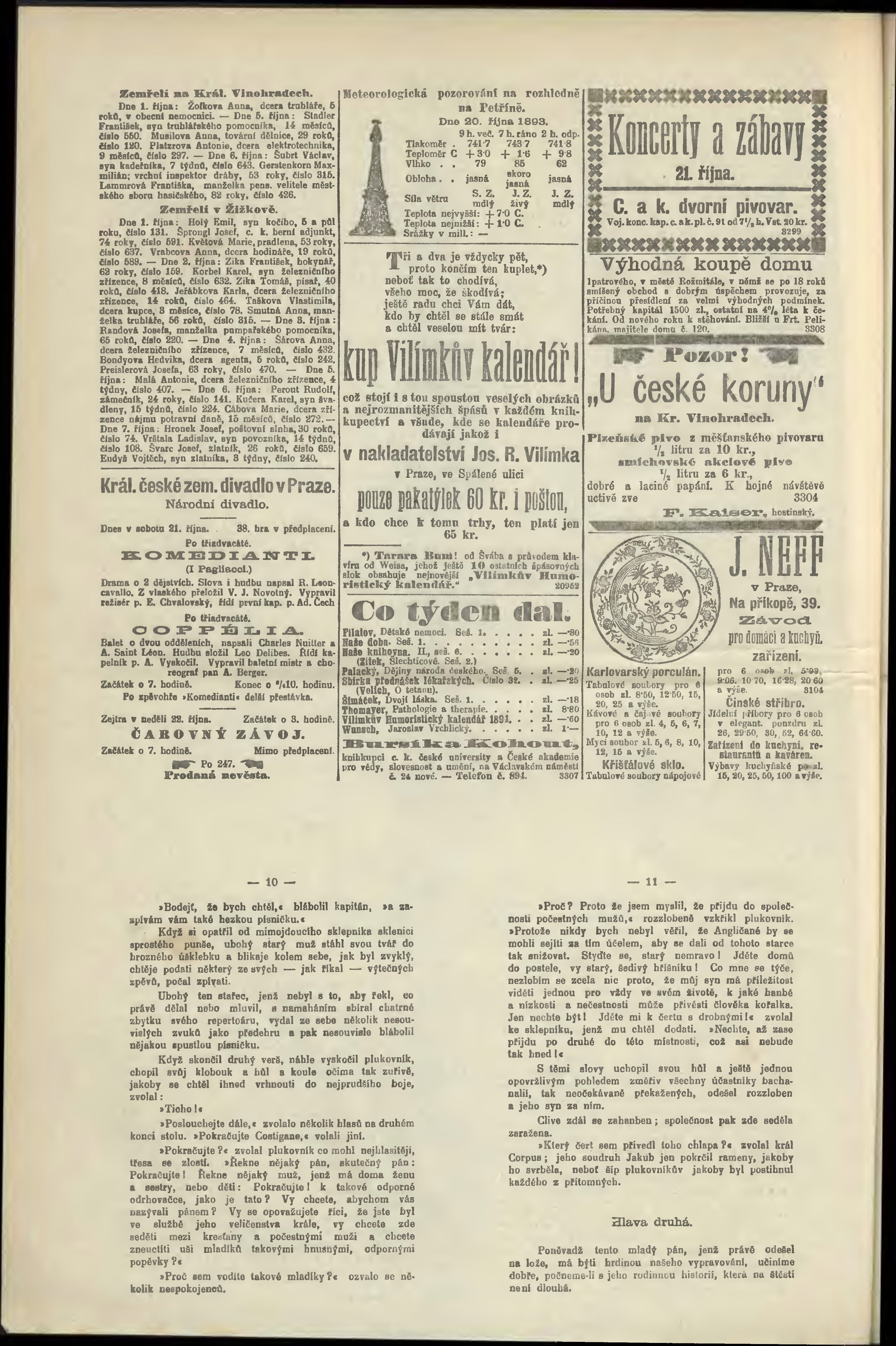 * Datum vydání výtisku: 21.10.1893 Číslo výtisku: 292 Poznámky k výtisku: odpolední vydání;