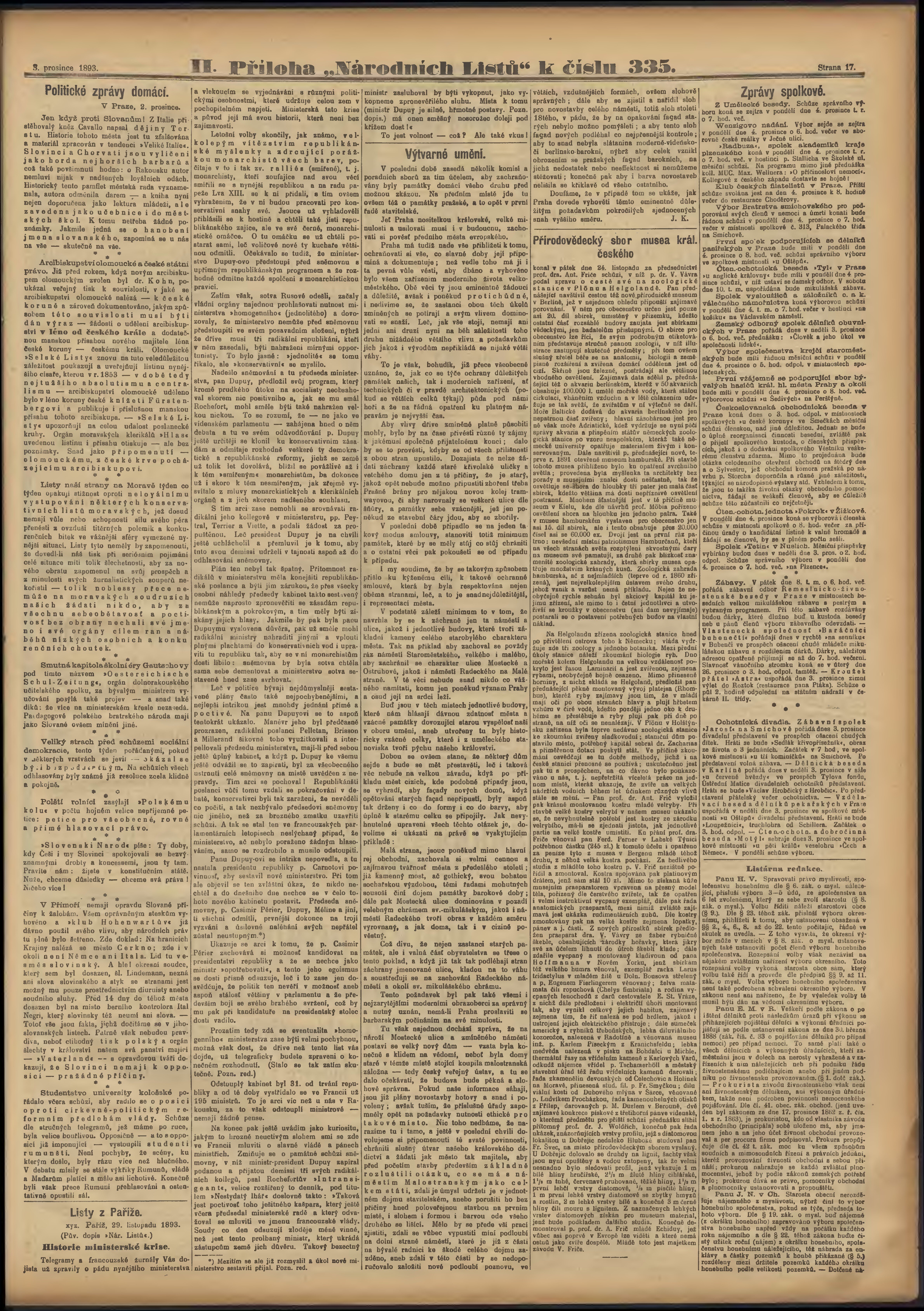 * Datum vydání výtisku: 3.12.1893 Číslo výtisku: 335