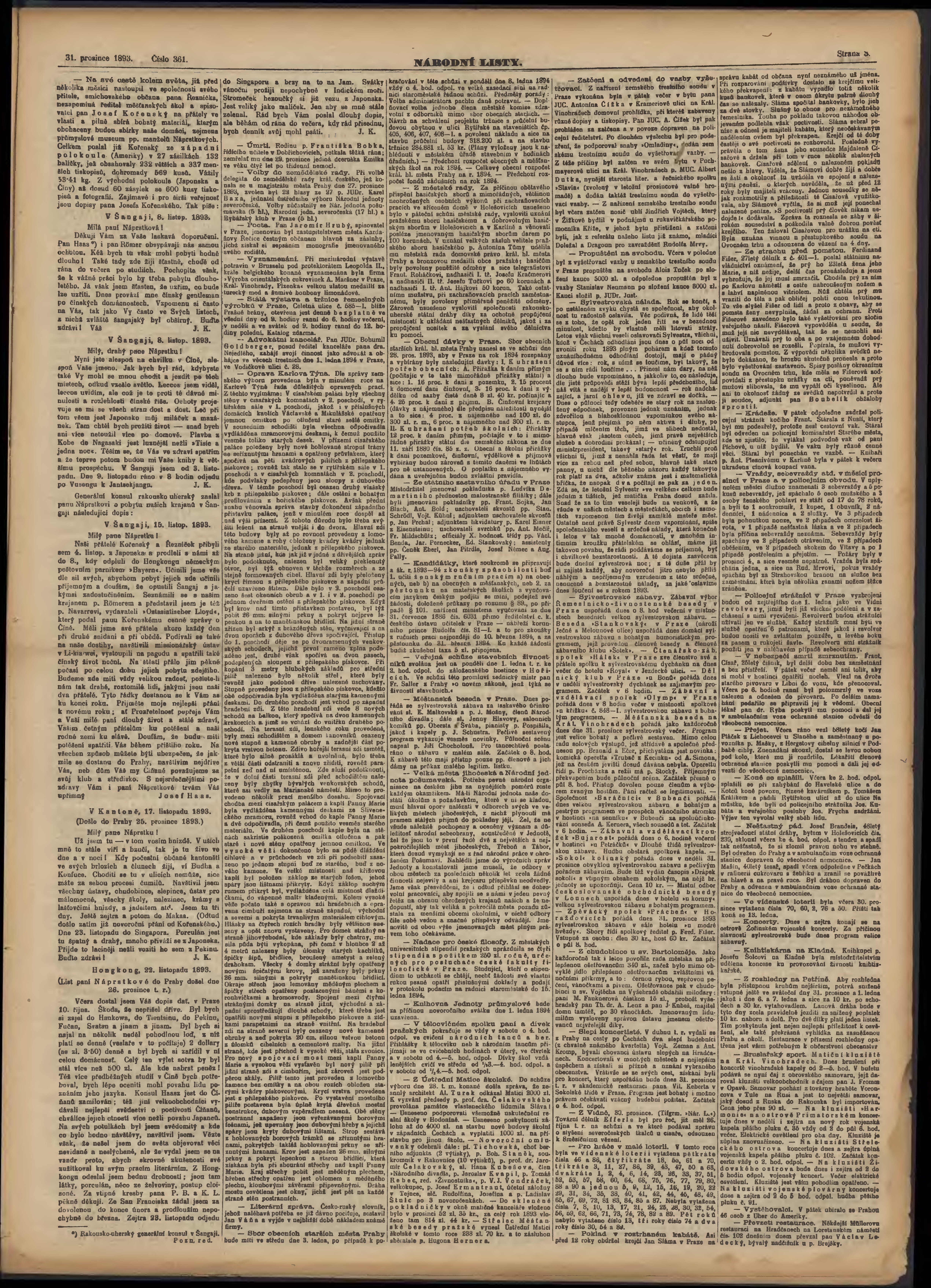 * Datum vydání výtisku: 31.12.1893 Číslo výtisku: 361