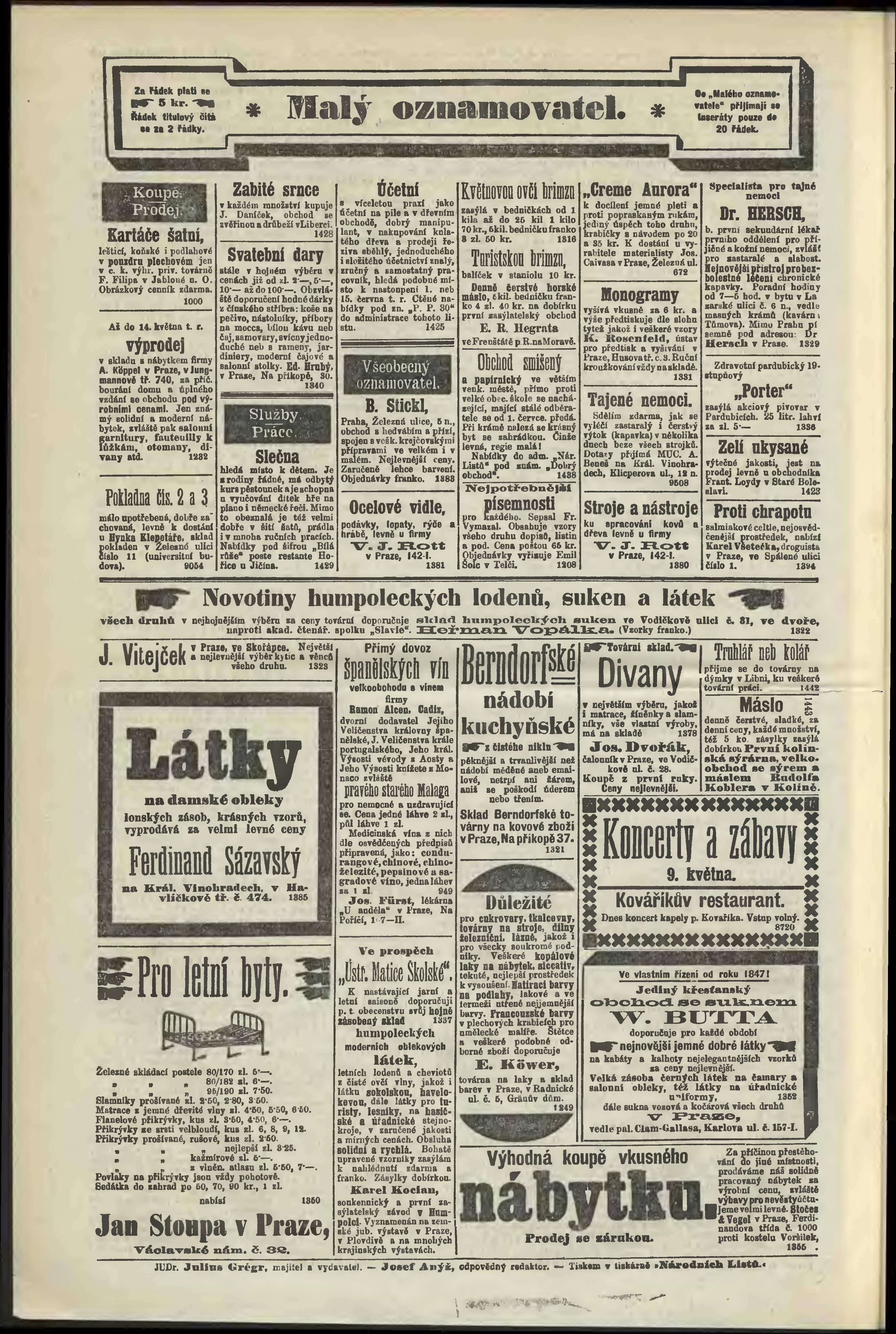 * Datum vydání výtisku: 9.5.1894 Číslo výtisku: 127 Poznámky k výtisku: odpolední vydání;