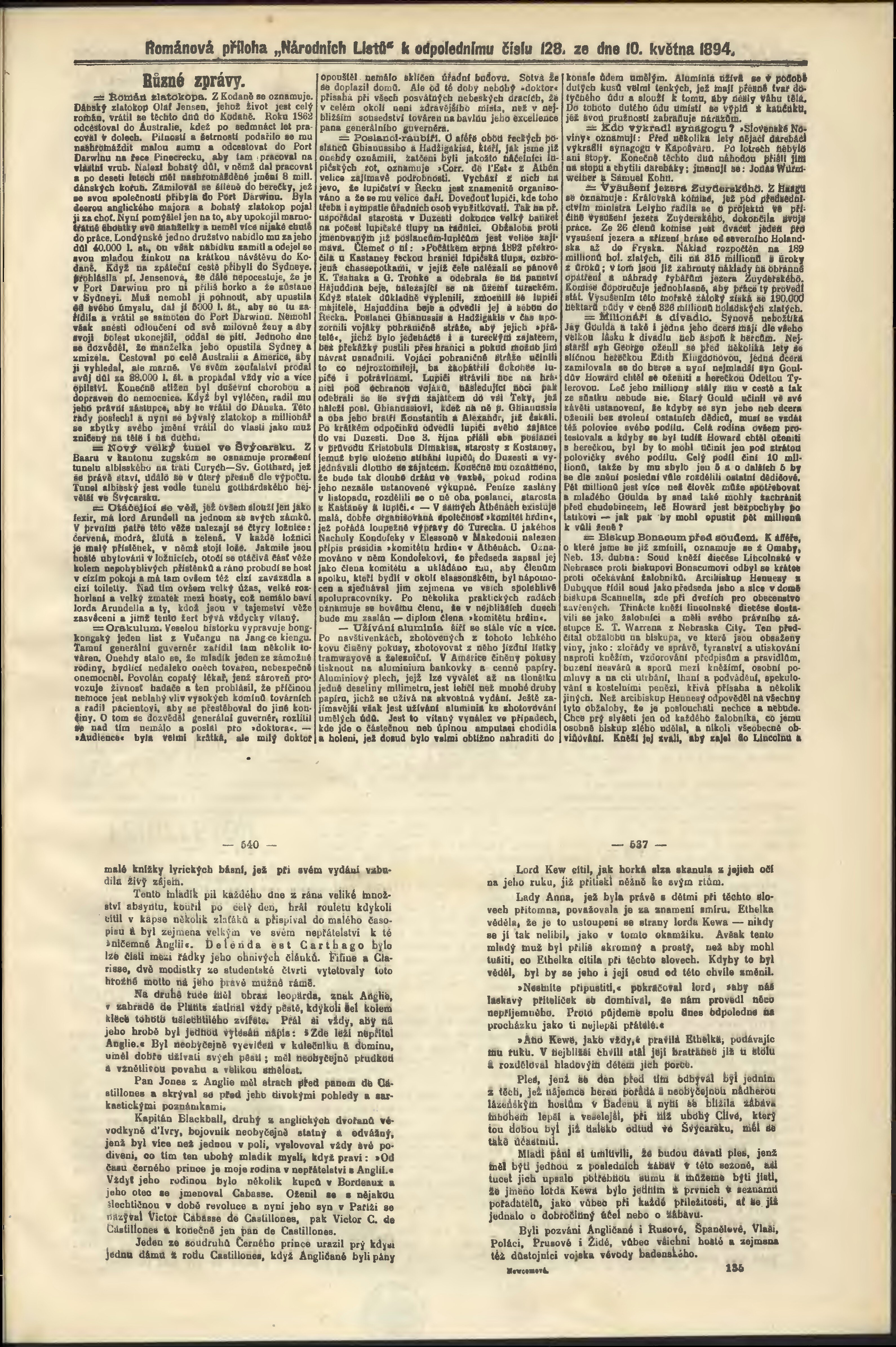 * Datum vydání výtisku: 10.5.1894 Číslo výtisku: 128 Poznámky k výtisku: odpolední vydání;