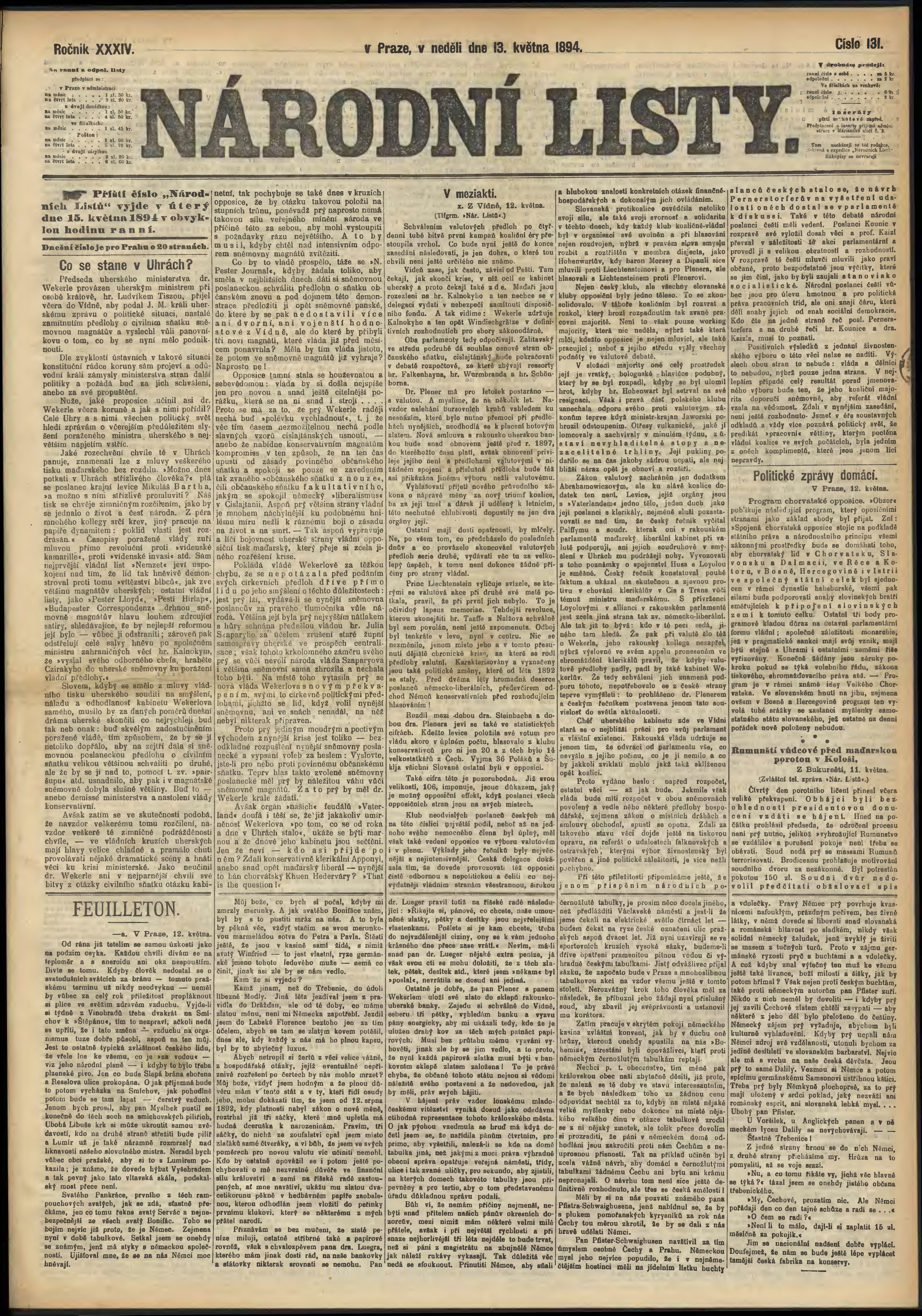 * Datum vydání výtisku: 13.5.1894 Číslo výtisku: 131