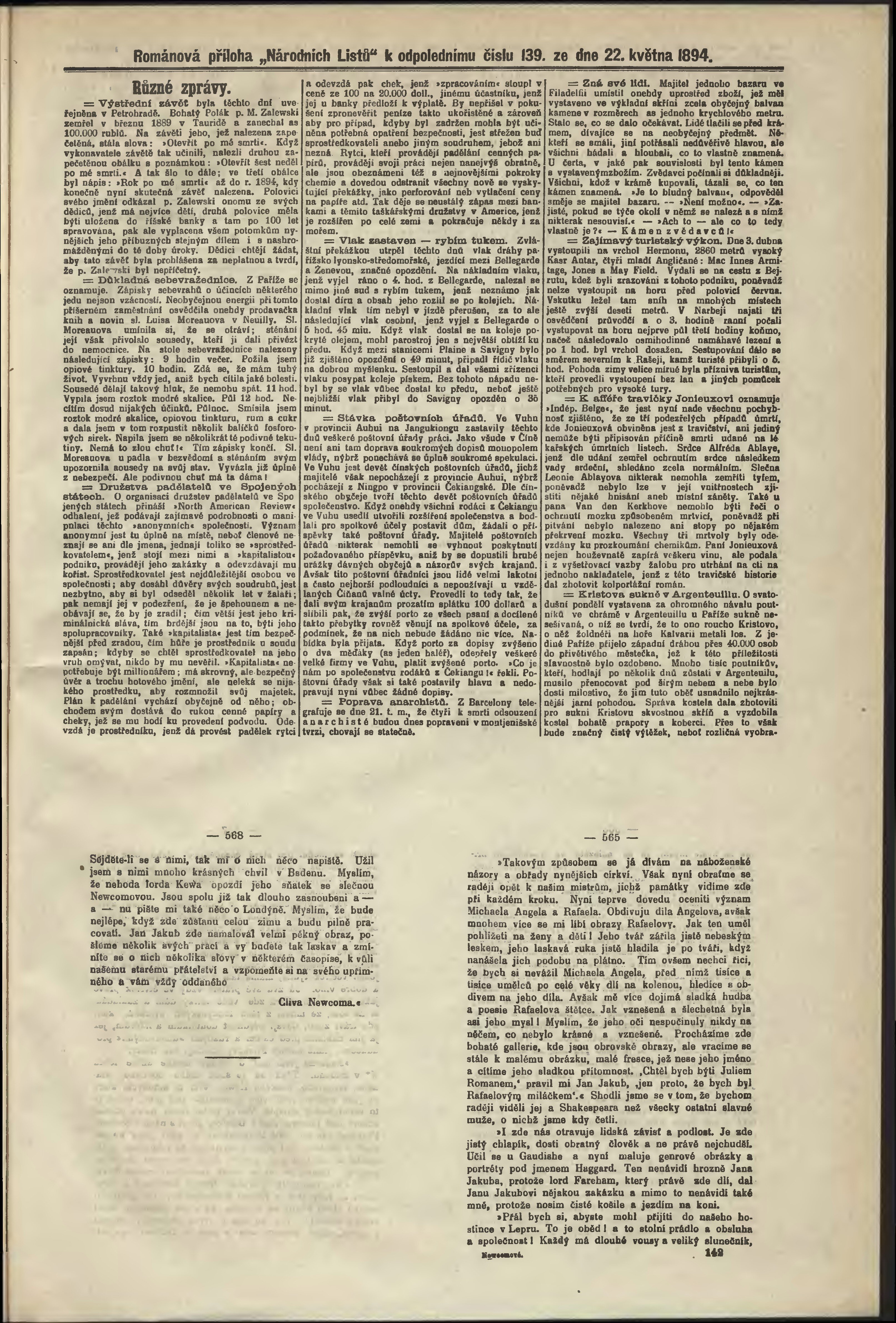 * Datum vydání výtisku: 22.5.1894 Číslo výtisku: 139 Poznámky k výtisku: odpolední vydání;