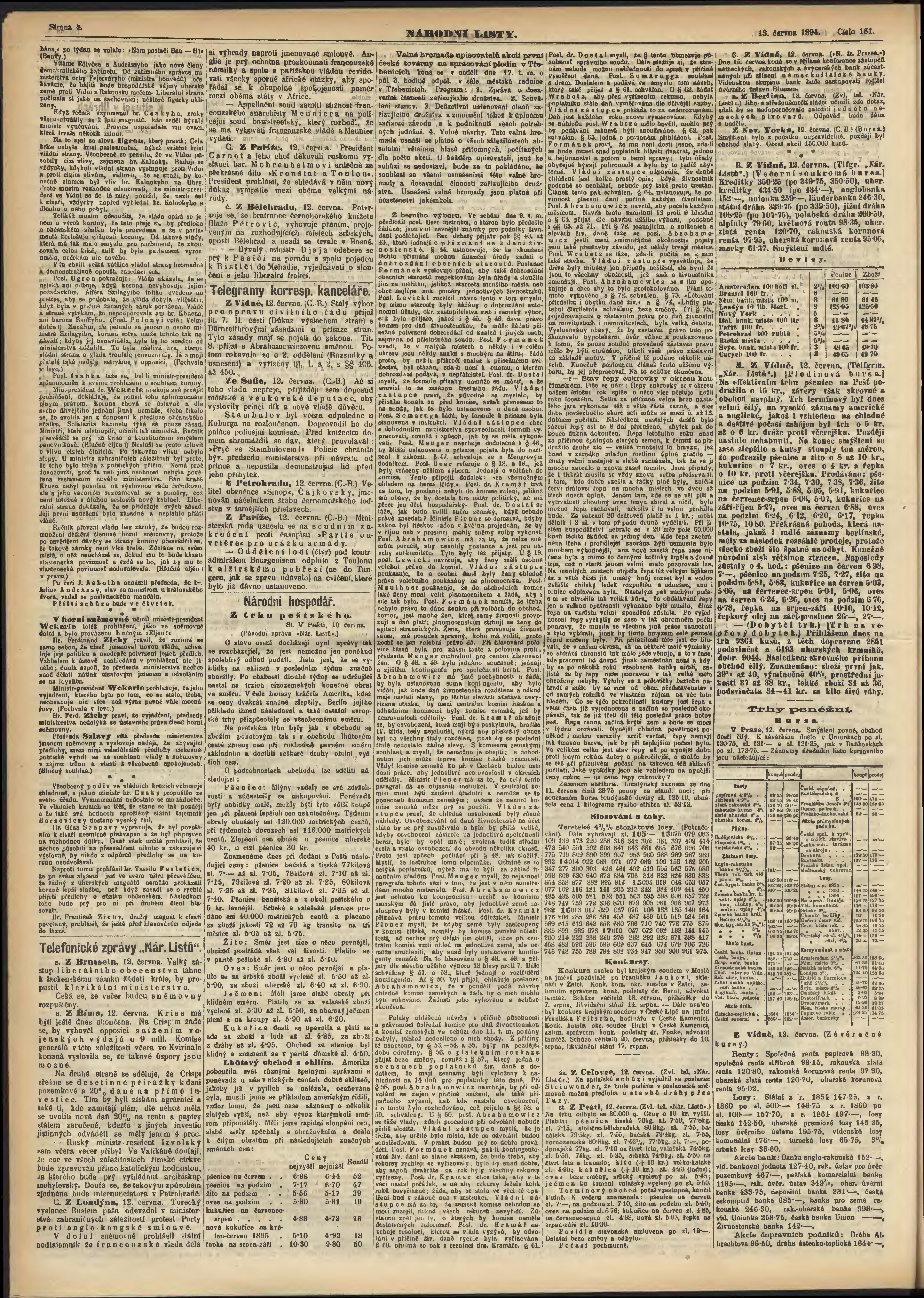 * Datum vydání výtisku: 13.6.1894 Číslo výtisku: 161