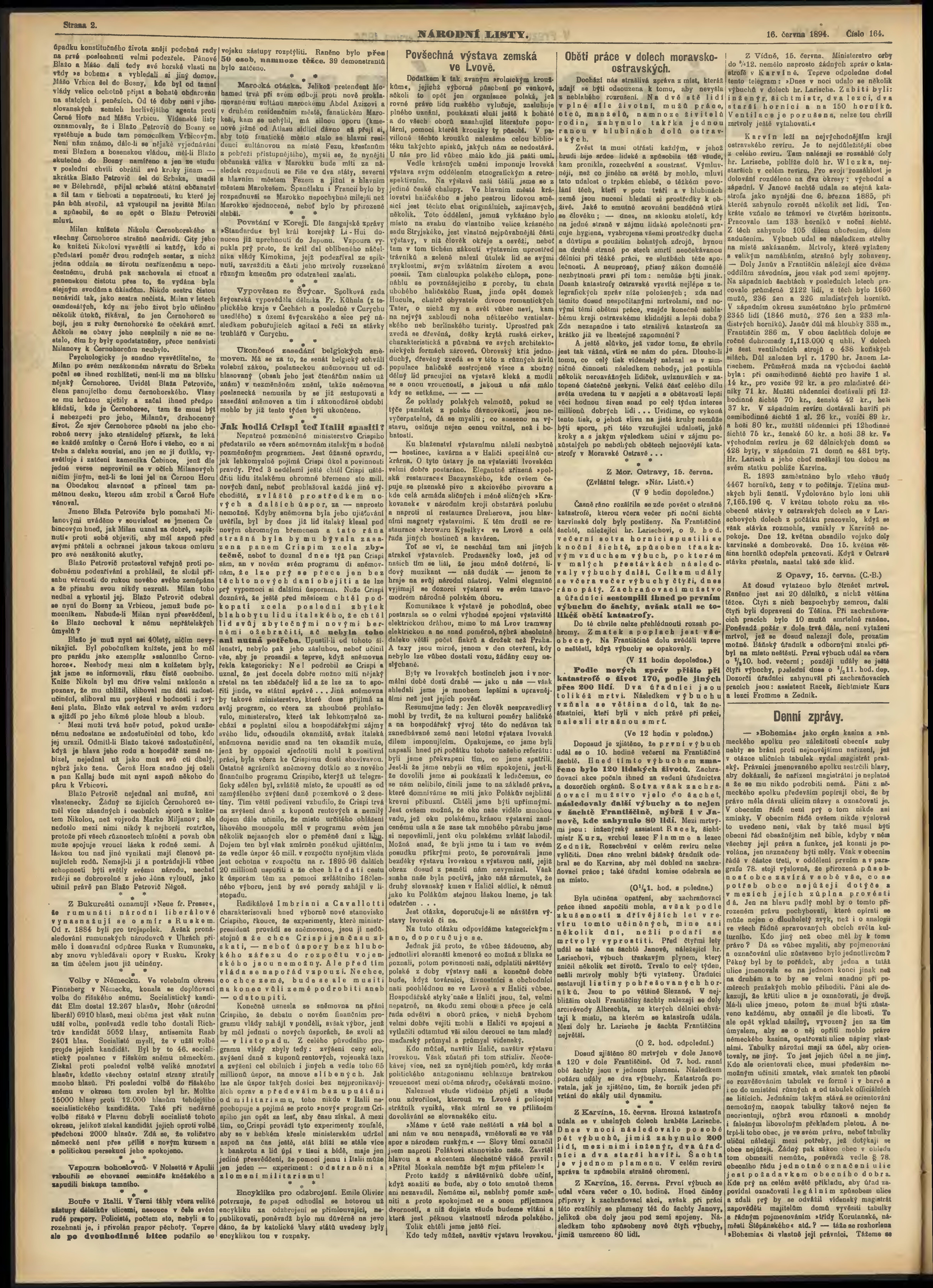 * Datum vydání výtisku: 16.6.1894 Číslo výtisku: 164