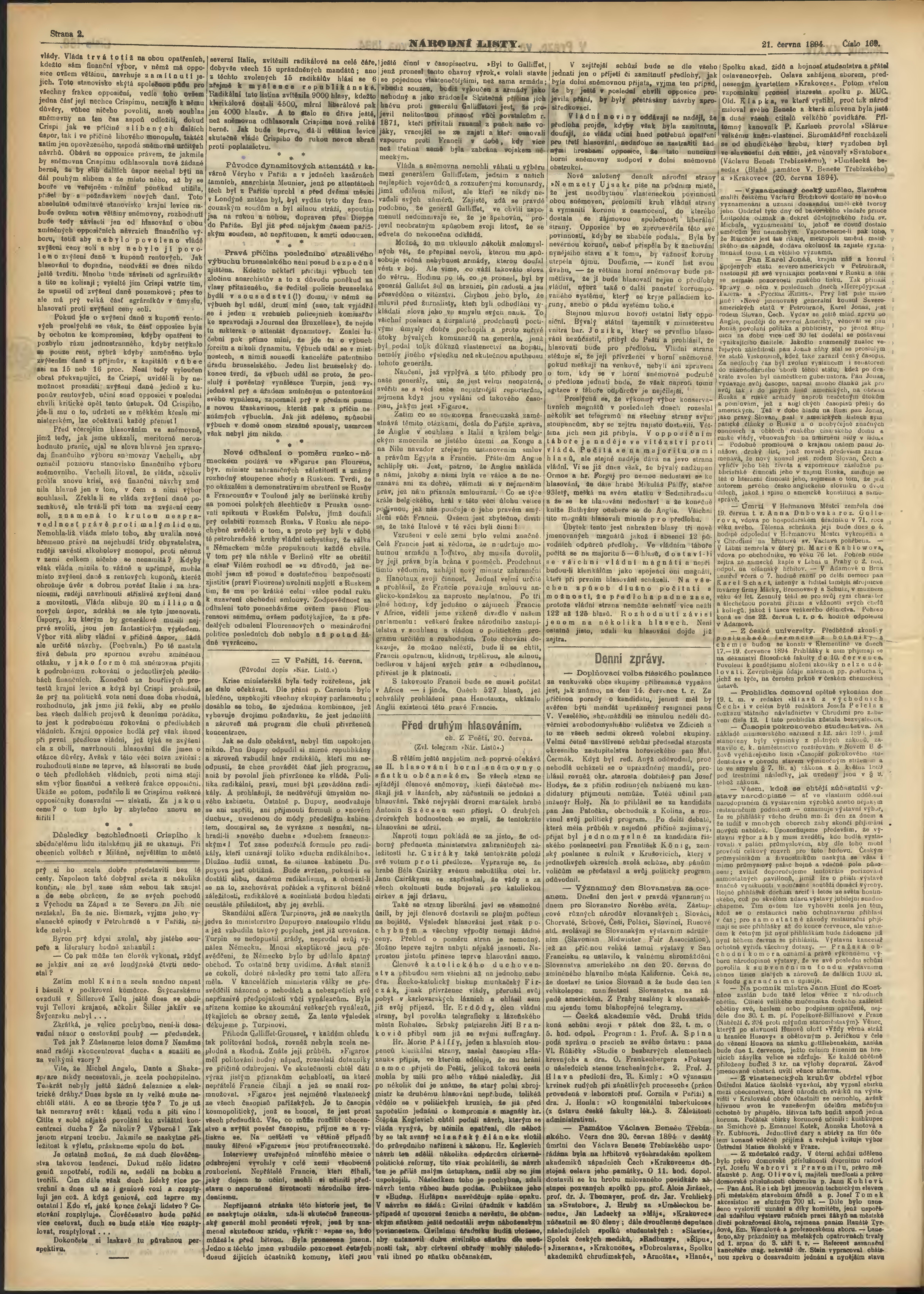 * Datum vydání výtisku: 21.6.1894 Číslo výtisku: 169