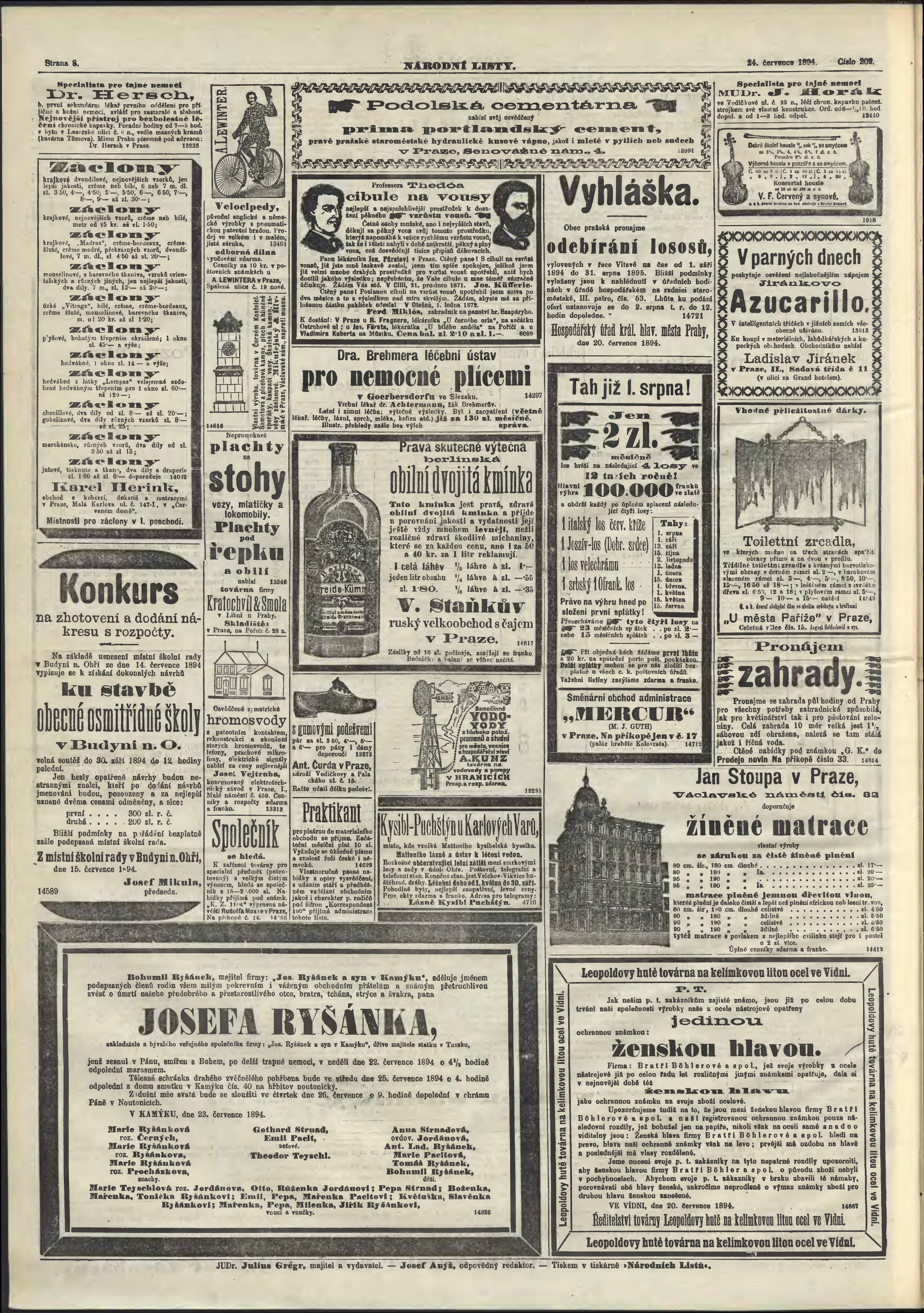 * Datum vydání výtisku: 24.7.1894 Číslo výtisku: 202
