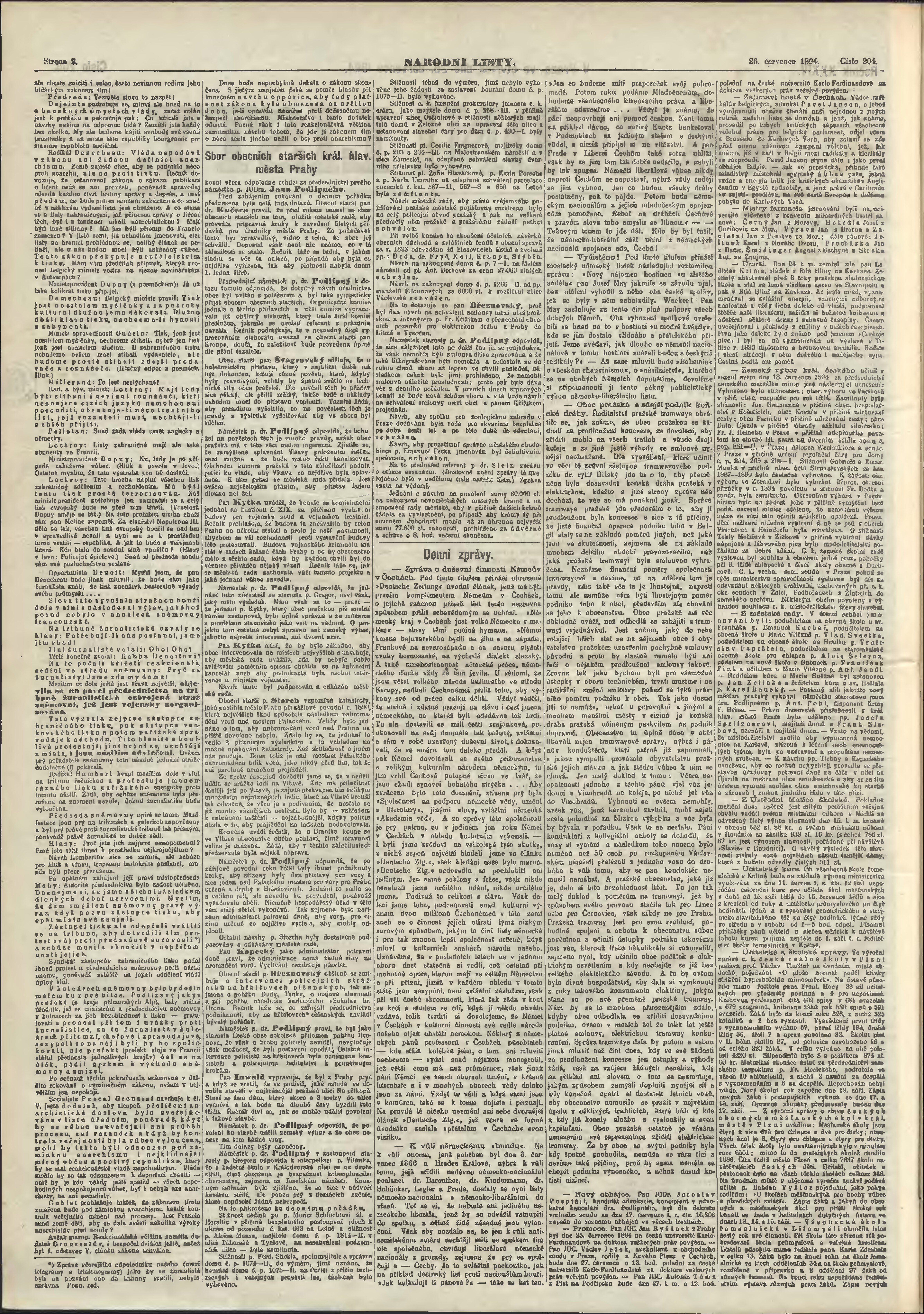 * Datum vydání výtisku: 26.7.1894 Číslo výtisku: 204