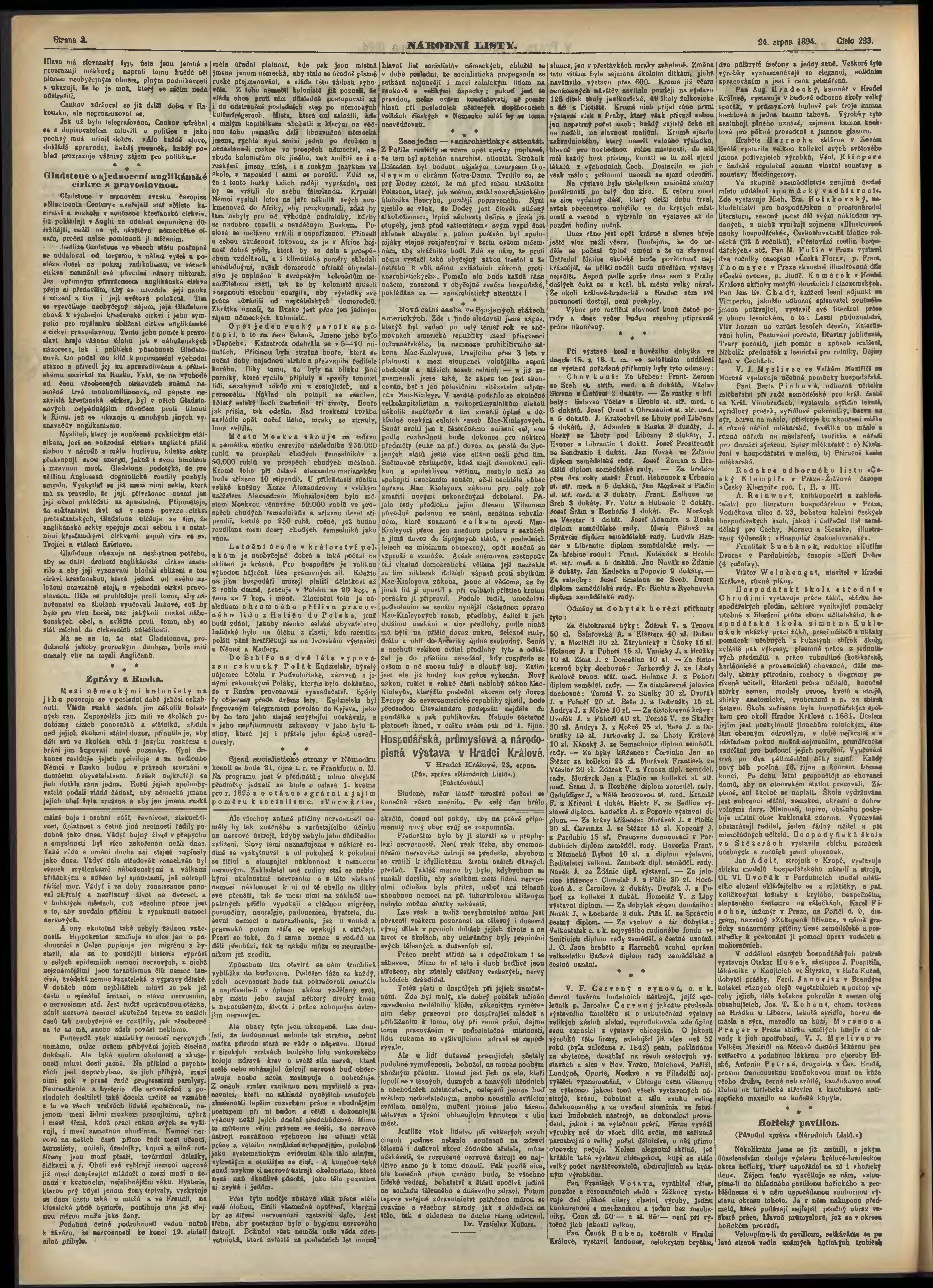 * Datum vydání výtisku: 24.8.1894 Číslo výtisku: 233