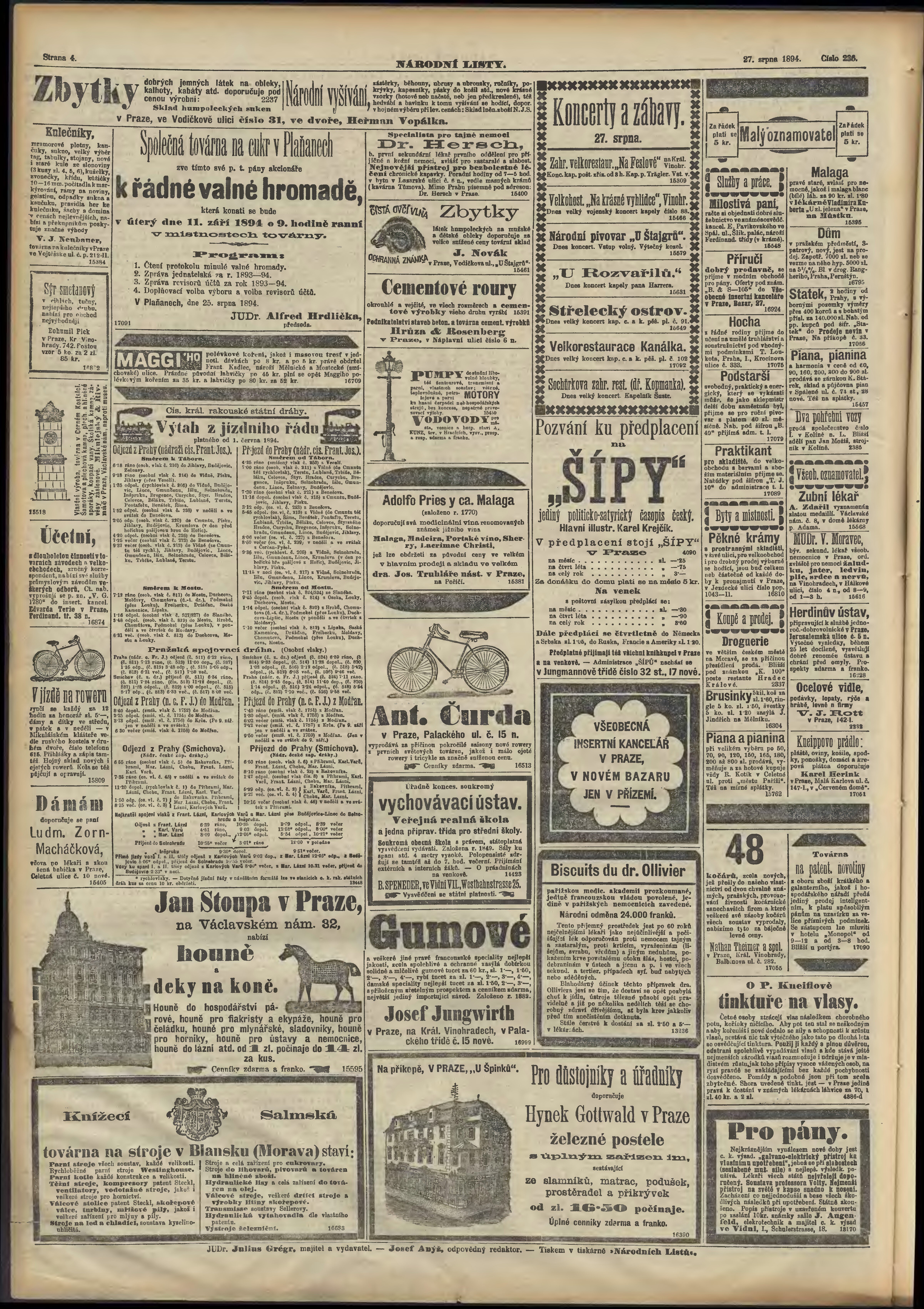 * Datum vydání výtisku: 27.8.1894 Číslo výtisku: 236